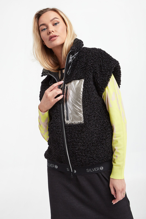 Kamizelka damska futrzana dwustronna z lisa SUPREMA Czarny Regular