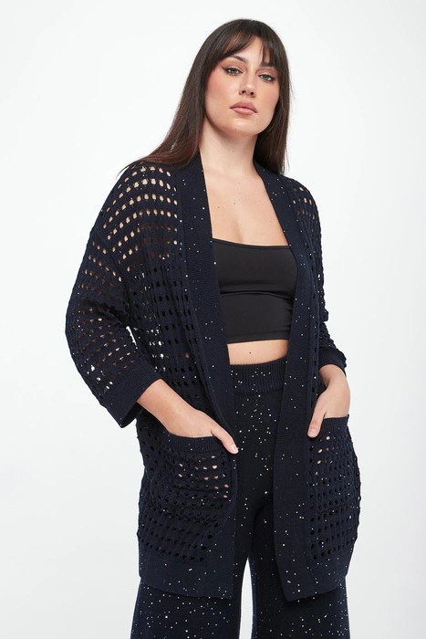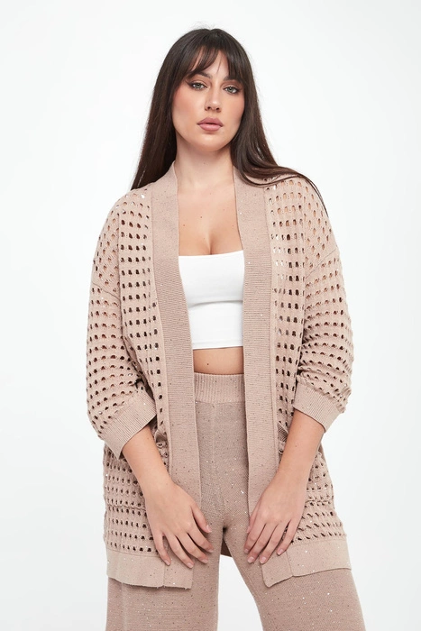 Kardigan damski ażurowy maxi LIU JO Brązowy Regular