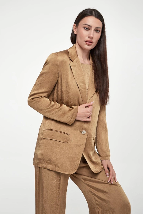 Żakiet damski z ekoskóry ELISABETTA FRANCHI Kamelowy Slim