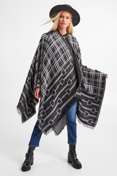 Ponczo damskie z logo LIU JO Czarny Oversize