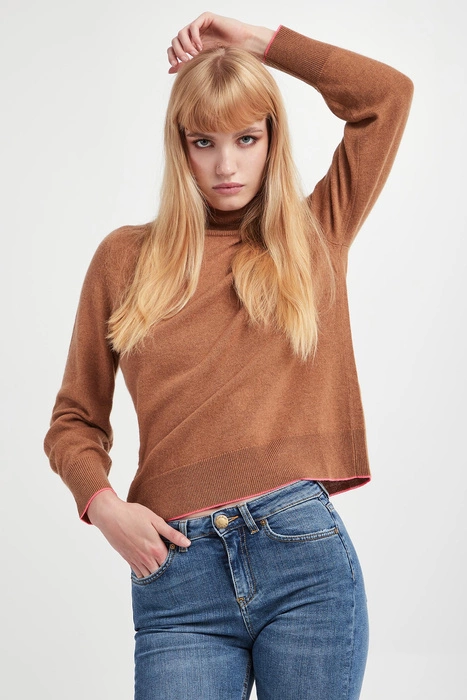 Golf damski wełniany Polipo PINKO Kamelowy Regular