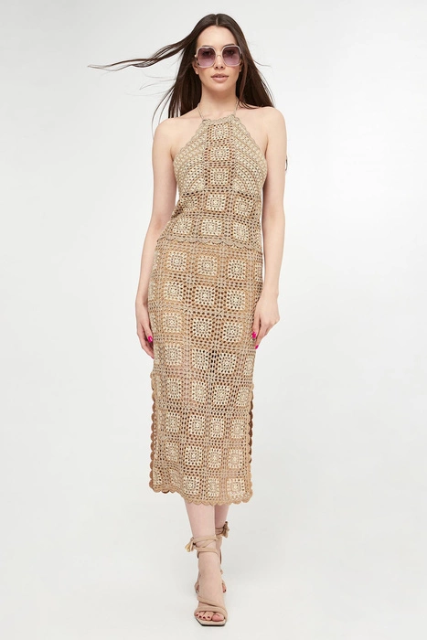 Komplet damski dziergany top + spódnica TWINSET Beżowy Slim