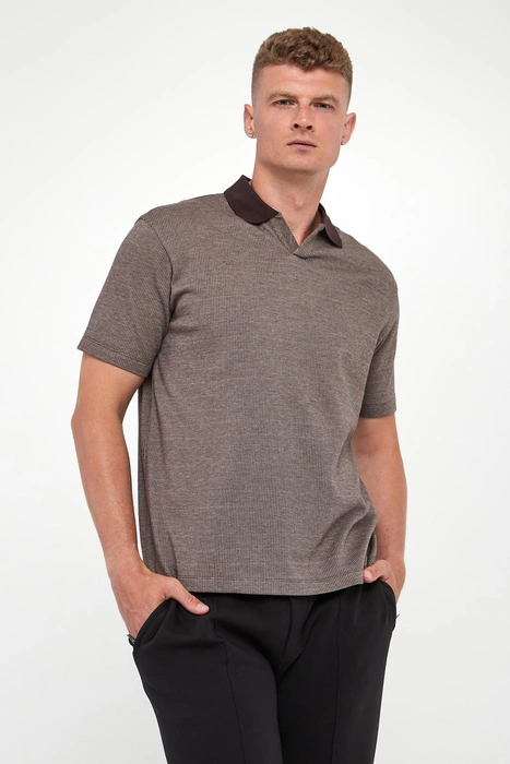 Polo męskie w jodełkę EMPORIO ARMANI Brązowy Regular