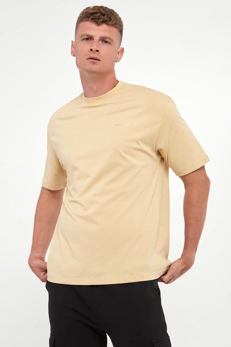 T-shirt męski z logo KARL LAGERFELD Beżowy Regular
