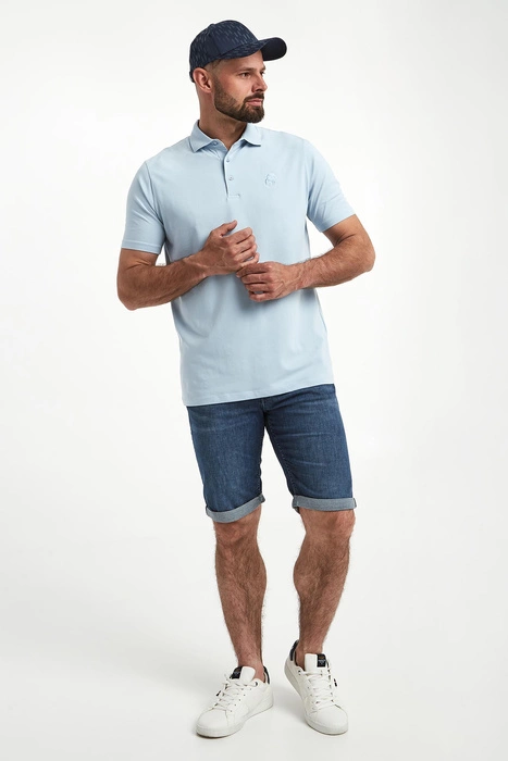 Polo męskie z logo KARL LAGERFELD Błękitny Regular