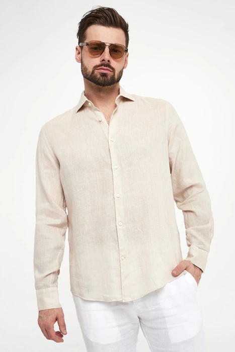 Koszula męska lniana PAUL&SHARK Beżowy Regular