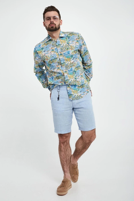 Bermudy męskie lniane PAUL&SHARK Błękitny Regular