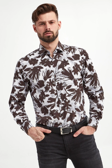 Koszula męska popelinowa KARL LAGERFELD Beżowy Slim