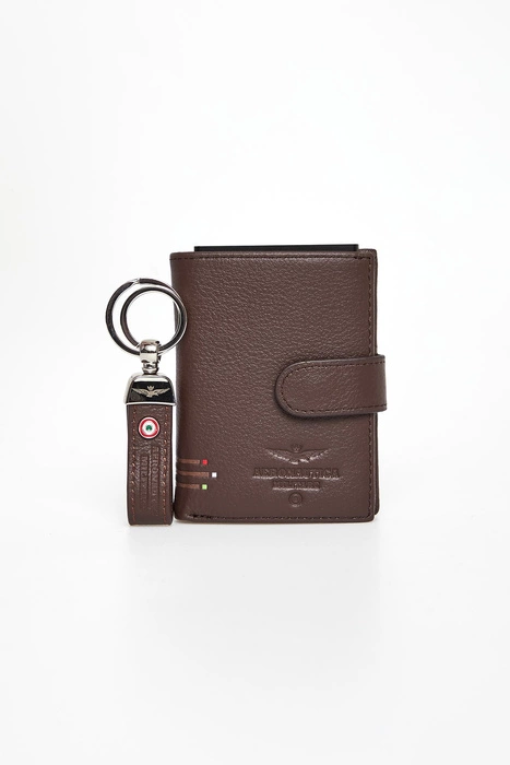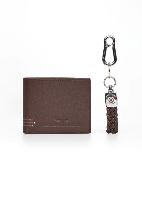 Komplet portfel + brelok męski skórzany AERONAUTICA MILITARE Brązowy