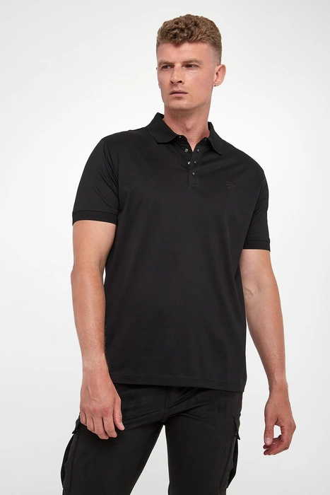 Polo męskie z logo KARL LAGERFELD Czarny Regular