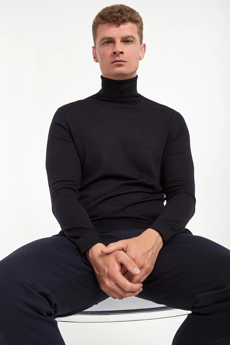Golf męski z wełny merino LIU JO Granatowy Regular
