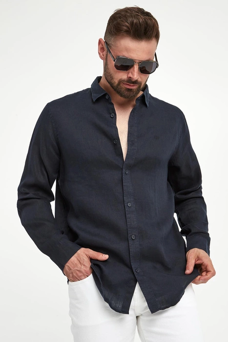 Koszula męska lniana ARMANI EXCHANGE Granatowy Regular
