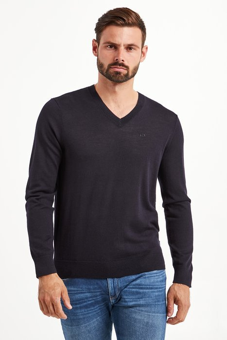 Sweter męski z wełny dziewiczej ARMANI EXCHANGE Granatowy Regular