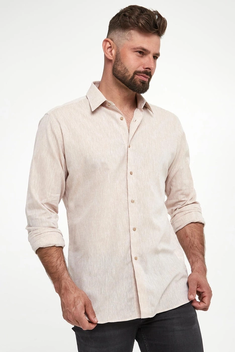 Koszula męska lniana KARL LAGERFELD Beżowy Regular
