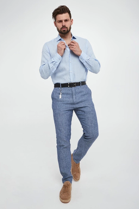 Spodnie męskie lniane PAUL&SHARK Granatowy Regular