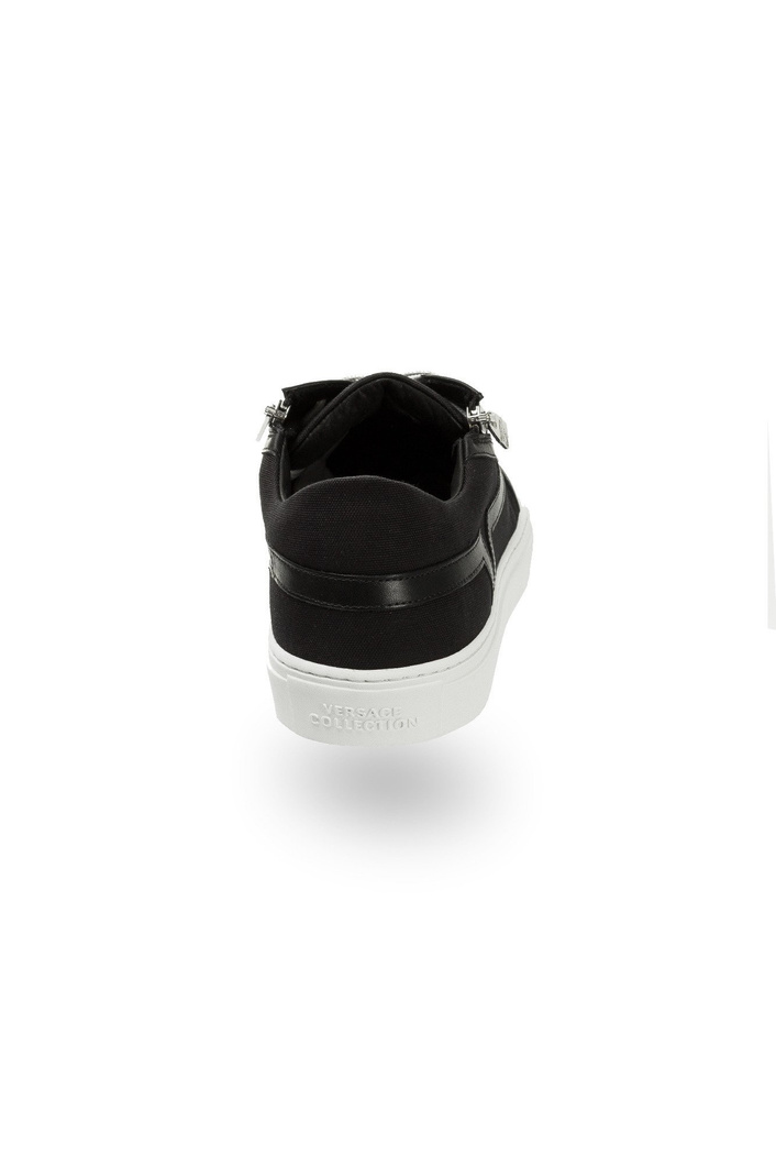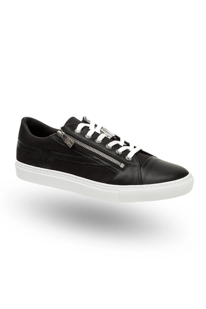 Czarne, sznurowane sneakersy z suwakami. Wykonane z materiału tekstylnego i skóry naturalnej. Podeszwa o wysokości ok. 2 cm w kolorze białym. Oprócz białych sznurowadeł dwa zamki po bokach. Na wkładce wytłoczone logo marki. Na sznurowadłach metalowa spinka z aplikacją marki. W komplecie worek przeciwkurzowy.