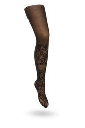 Czarne, bezszwowe rajstopy typu kabaretki. W pasie wygodna, szeroka guma. Rajstopy we wzór kwiatów oraz małych kropeczek.
