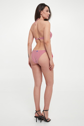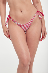 Dół od bikini w różowo-srebrne paski, wiązana na bokach. Z tyłu u góry wyhaftowane logo marki w kolorze niebieskim. Model z kolekcji UNDERWEAR & BEACHWEAR.