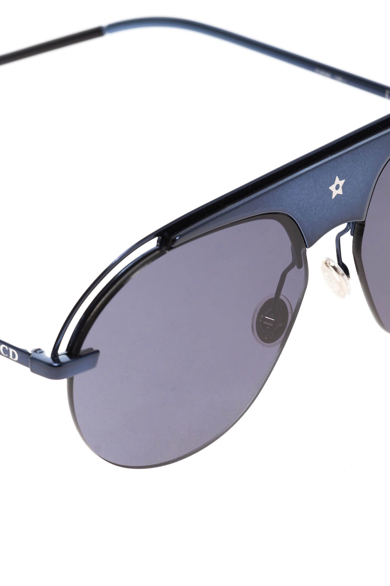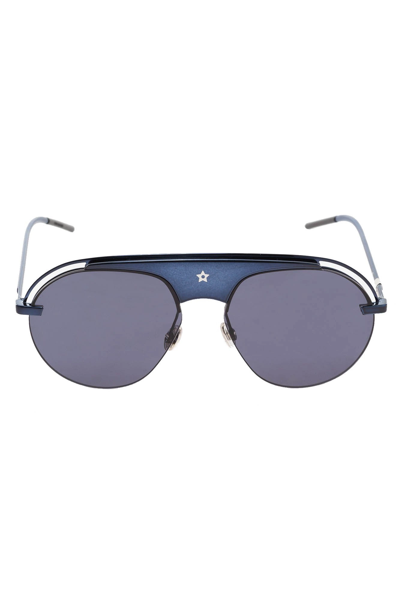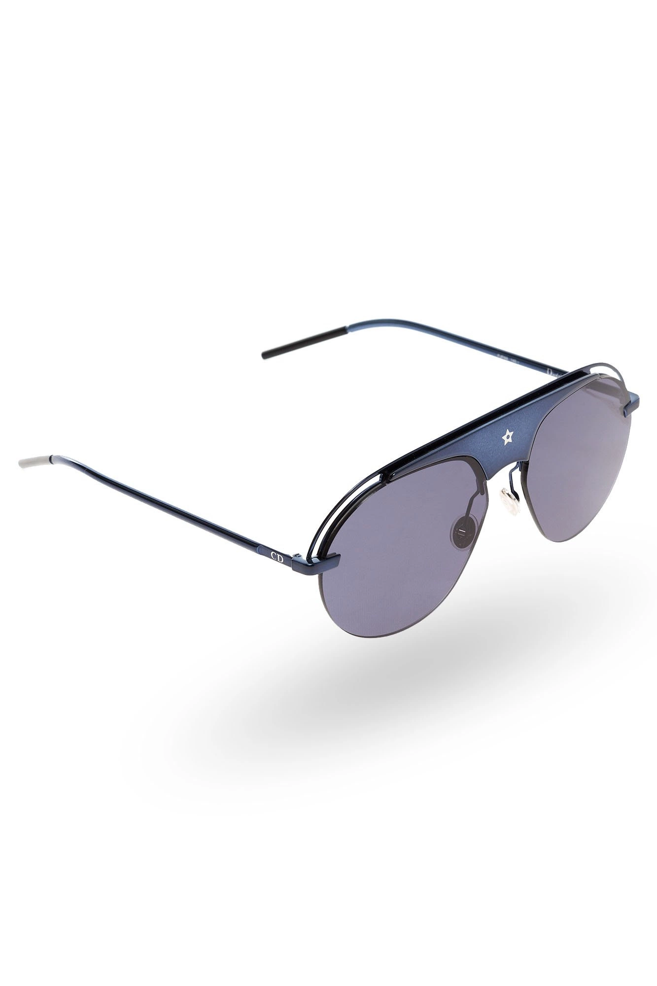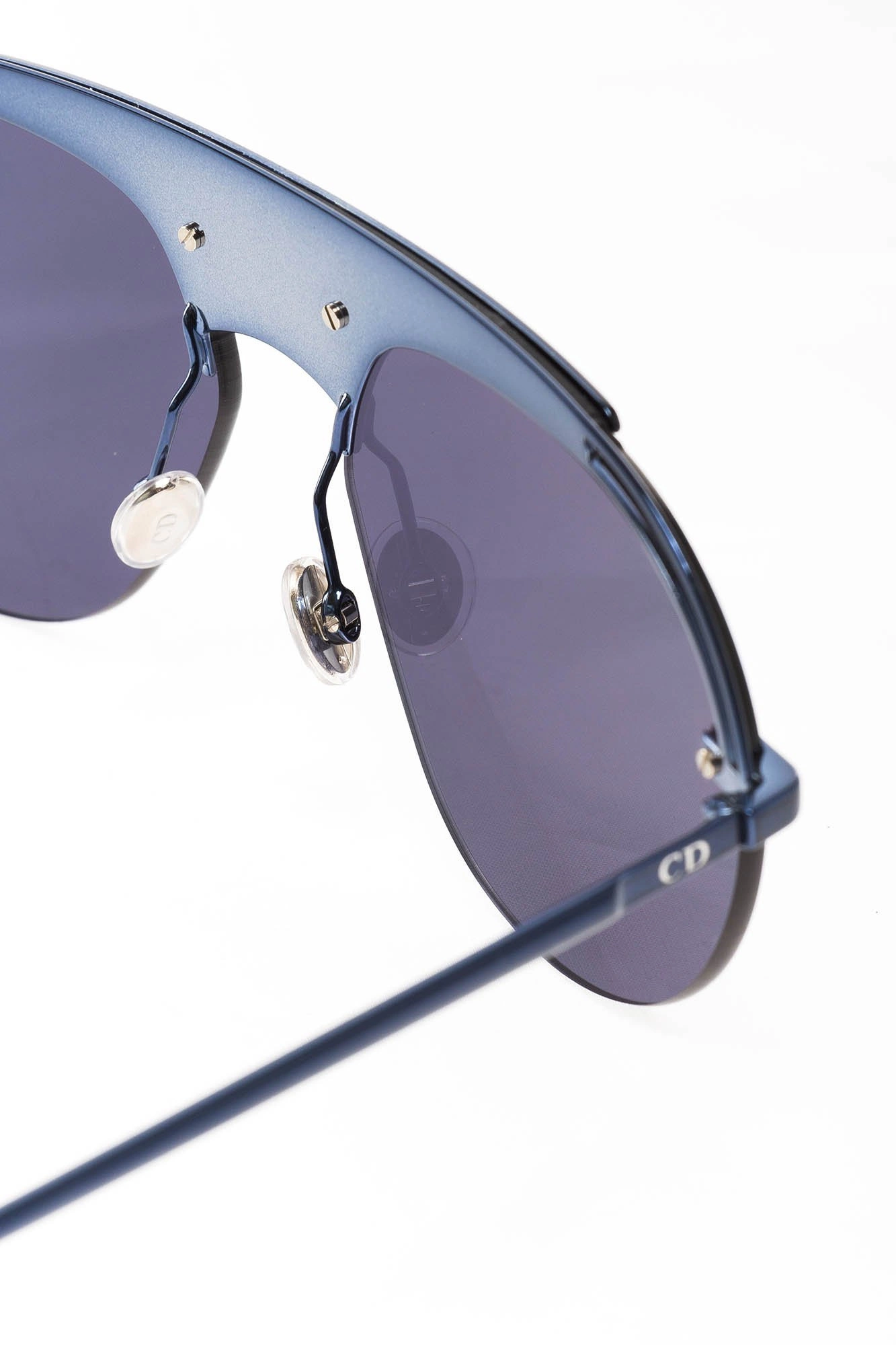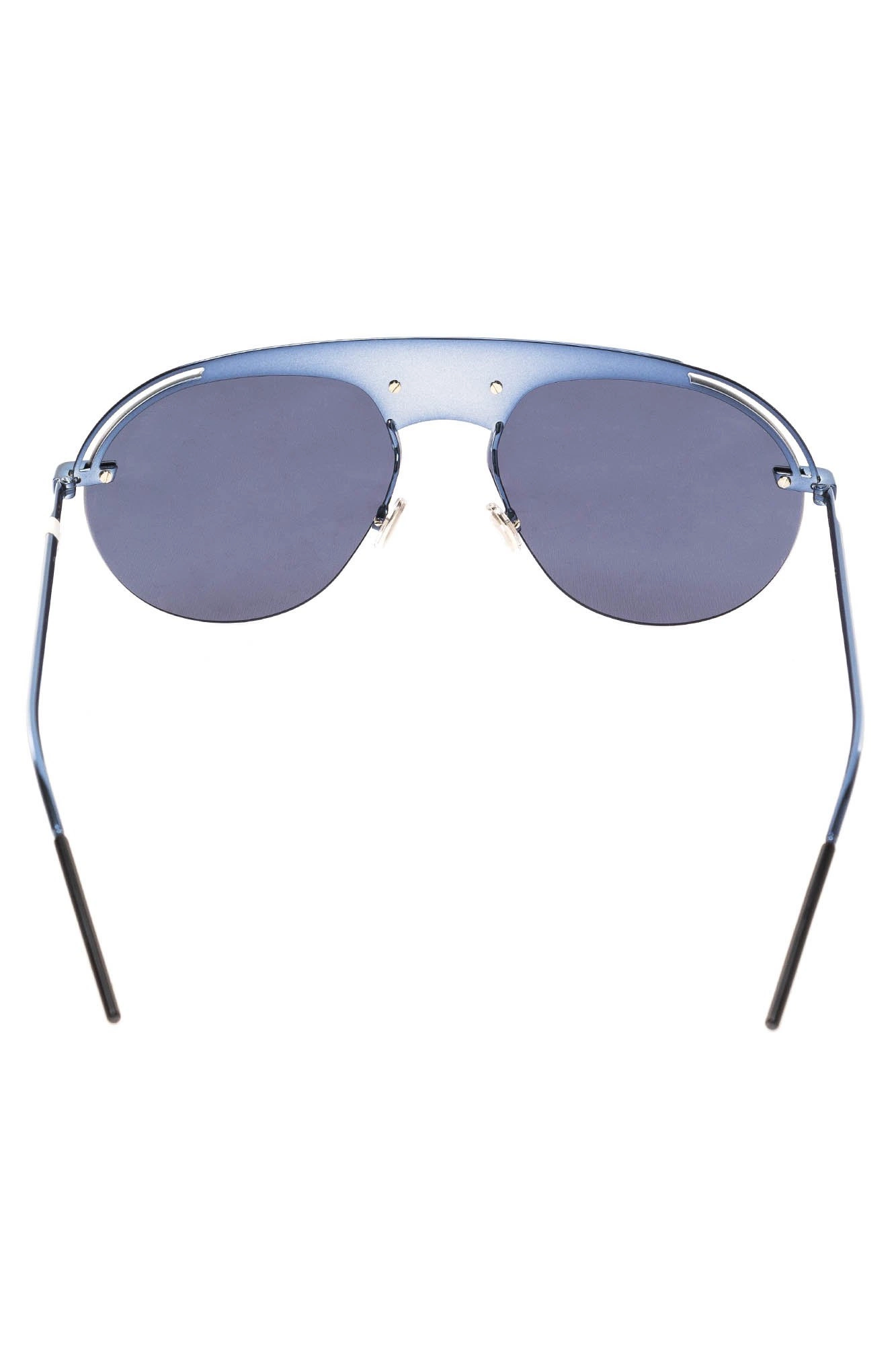 Okulary przeciwsłoneczne z oprawkami w kolorze granatowym. Zauszniki w kolorze czarnym. Soczewka z barwionymi szkłami. Oprawki sygnowane inicjałami marki. W komplecie oryginalne akcesoria: eleganckie etui, ściereczka z mikrofibry do soczewek oraz certyfikat.