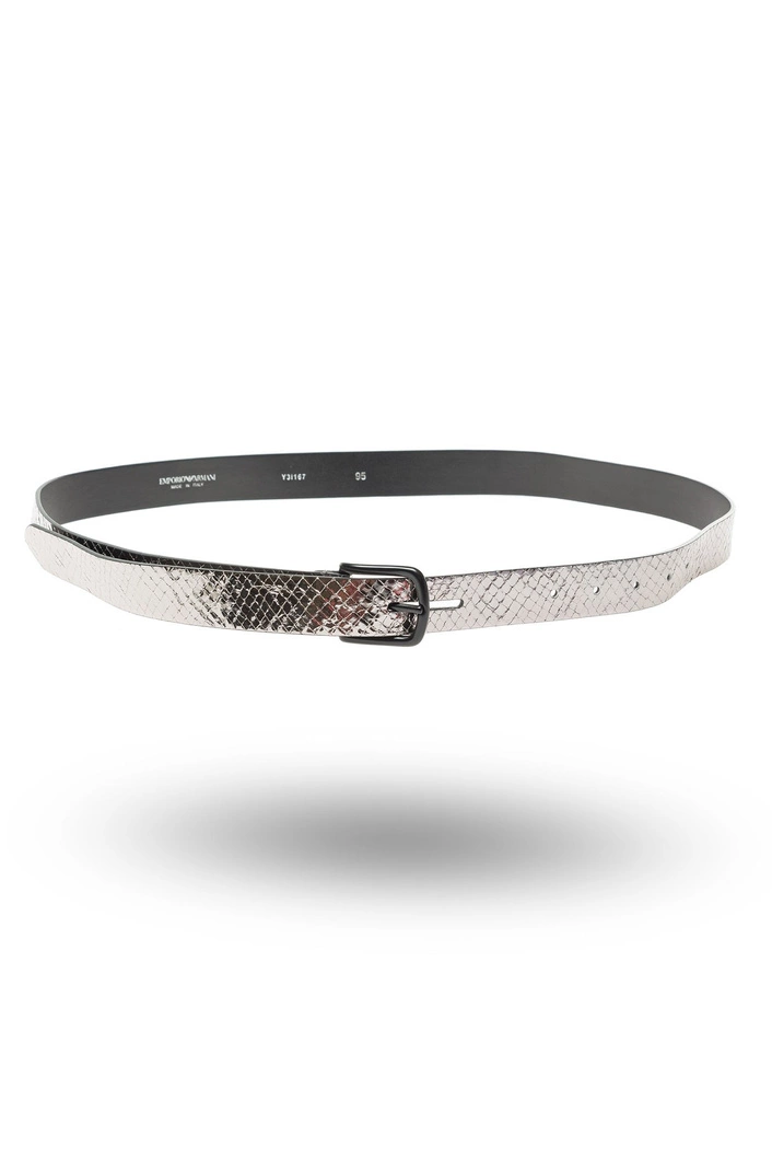Pasek wykonany ze skóry naturalnej. Pasek we wzór imitujący skórę węża. Zapinany na klasyczną klamrę w kolorze czarnym. Wewnętrzna strona paska w kolorze czarnym.