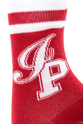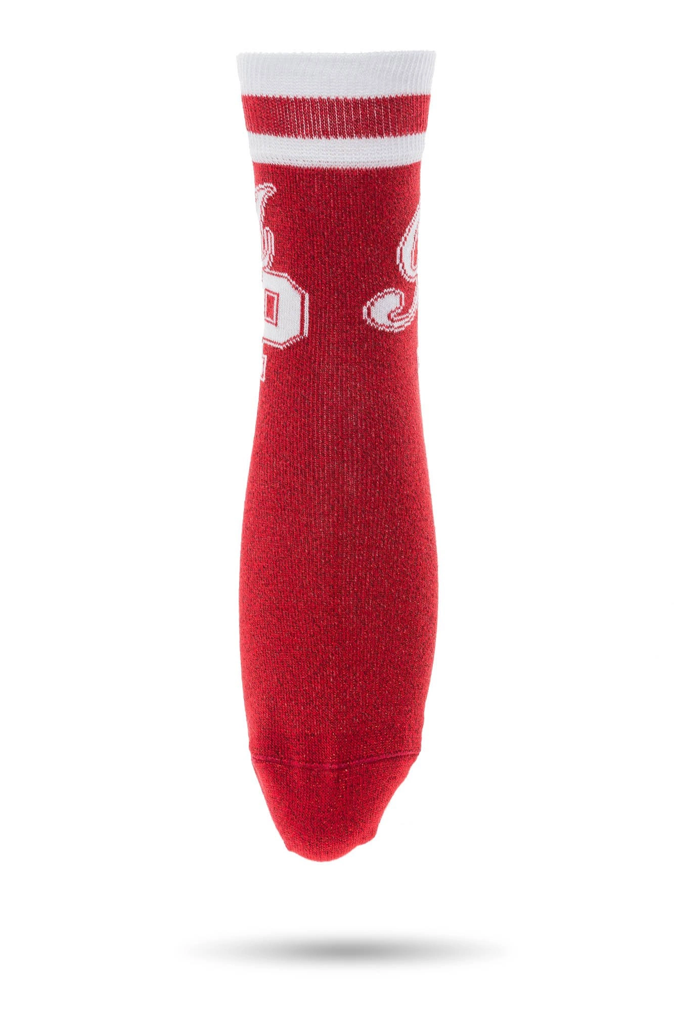 Czerwone skarpety przetykane metaliczną nicią. Wykonane z bawełny z domieszką poliamidu i elastanu. Wykończone biało-czerwonym ściągaczem. Na wysokości kostki aplikacja w postaci logo marki.