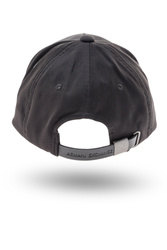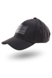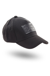 Czapka z daszkiem w kolorze czarnym. Z przodu duża aplikacja logo marki w kolorze czarnym. Regulowana z tyłu za pomocą zapięcia z nazwą marki. Rozmiar uniwersalny.