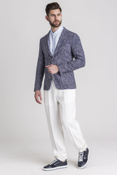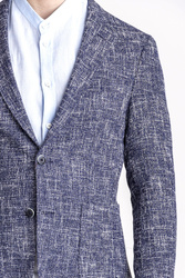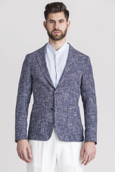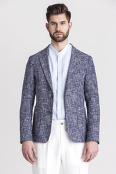 Melanżowa marynarka o dopasowanym fasonie. Klapy otwarte. Zapinana na dwa guziki, sygnowane logo marki. Z przodu dwie naszyte kieszenie bez patki. Marynarka dwuszlicowa. Wykonana z wysokiej jakości dzianiny. Miękka, wygodna i przyjemna w dotyku.
