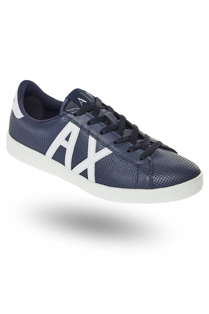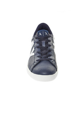 Sneakersy w granatowym kolorze. Wiązane na sznurowadła w tym samym kolorze. Po obu stronach biała aplikacja w postaci logo marki. Góra wykonana ze skóry naturalnej, o przewiewnej strukturze. Na języku granatowa aplikacja z logo marki. Zapiętek w białym kolorze, na nim granatowy nadruk z nazwą marki. Podeszwa o wysokości około 3 cm. Wykonane z wysokiej jakości materiałów. Lekkie i wygodne.