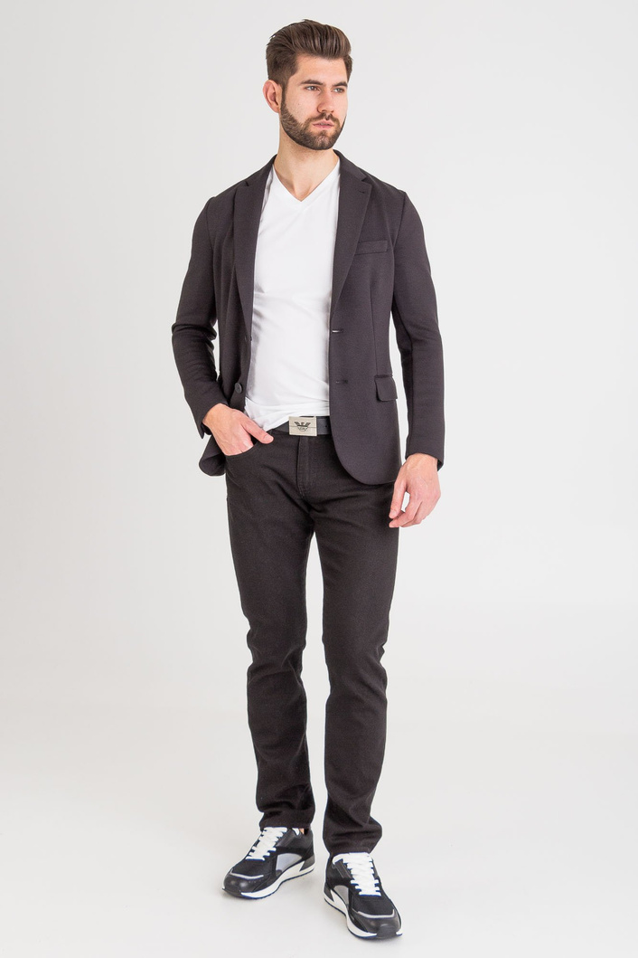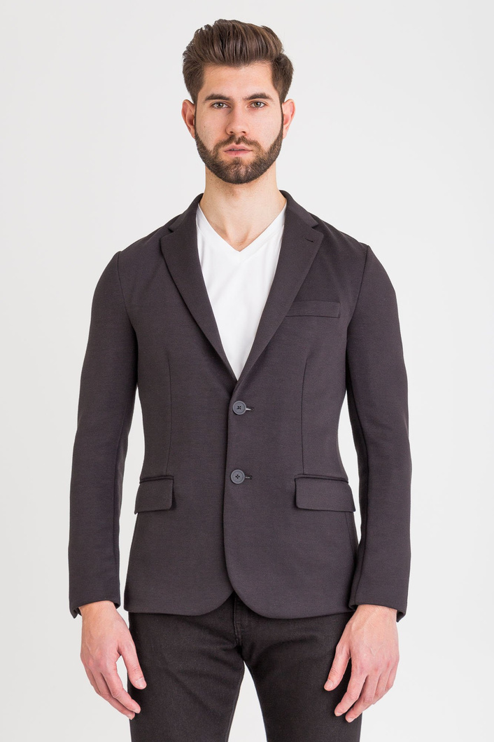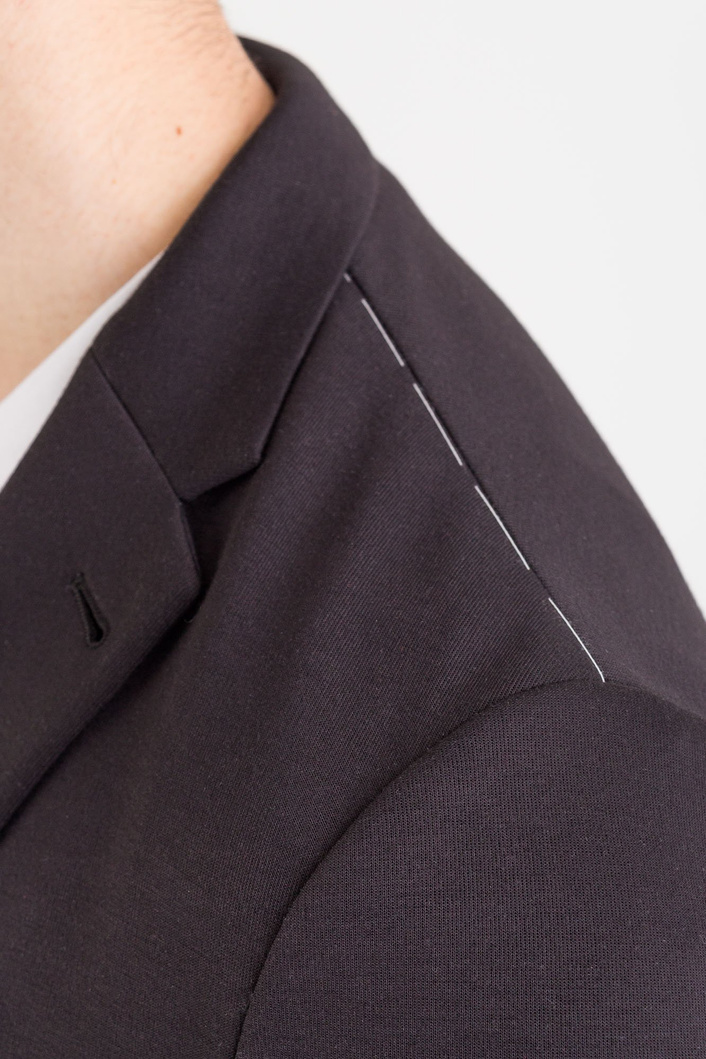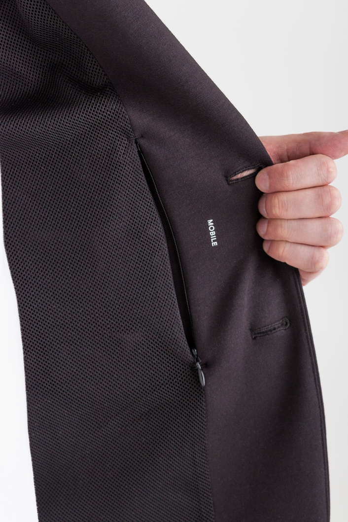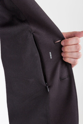 Marynarka w kolorze czarnym. Klapy otwarte. Jednorzędowa, zapinana na dwa guziki. Z przodu dwie, niezapinane kieszenie z patką oraz butonierka. Na ramionach ozdobne, białe przeszycie. Rękaw prosty, wykończony rzędem guzików. Wewnątrz dwie kieszenie, zapinane na zamek. Marynarka z linii Travel Essential, charakteryzującej się niezwykłą wygodą i jakością materiałów. Wykonana z najwyższej jakości materiałów.
