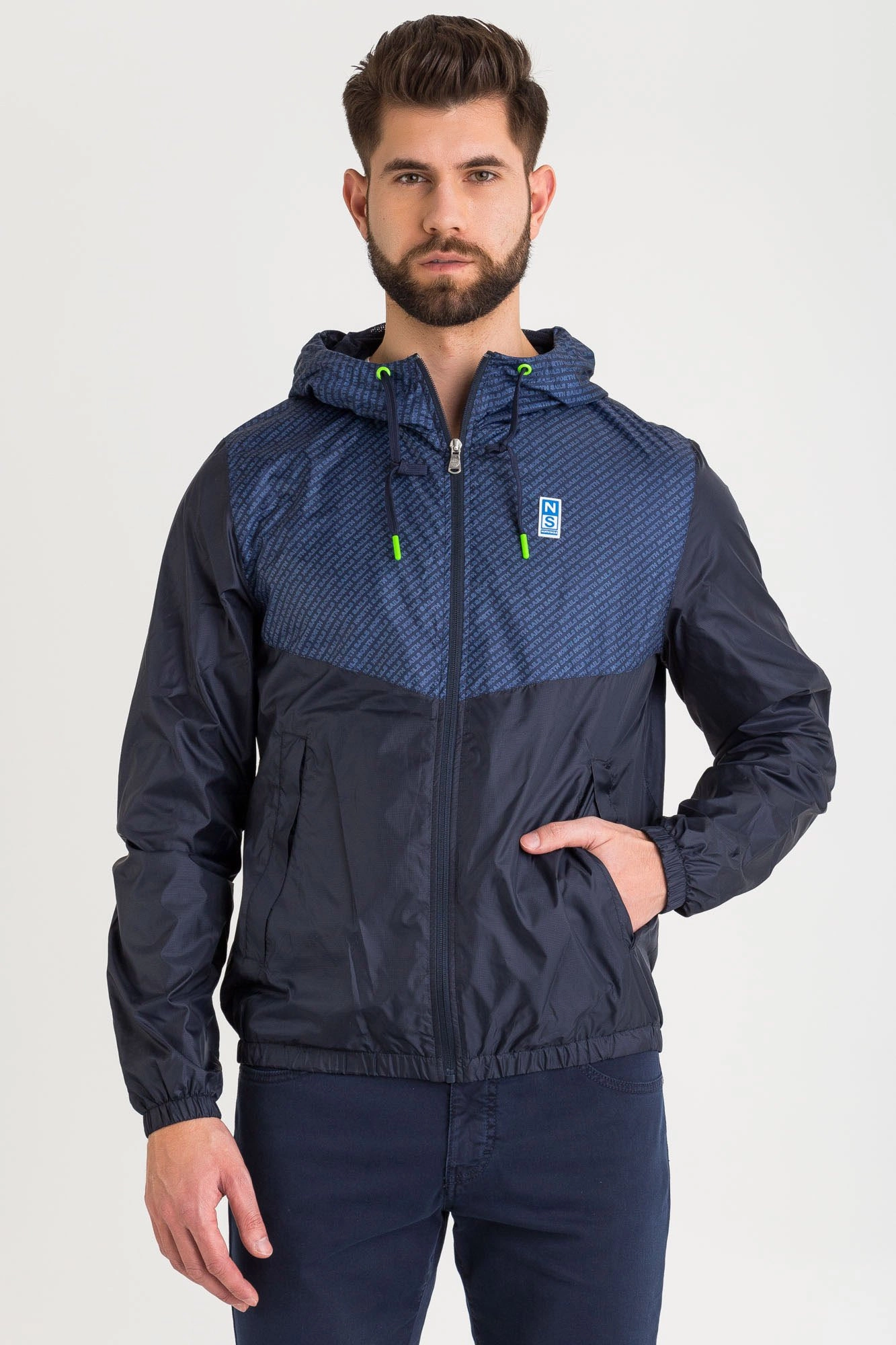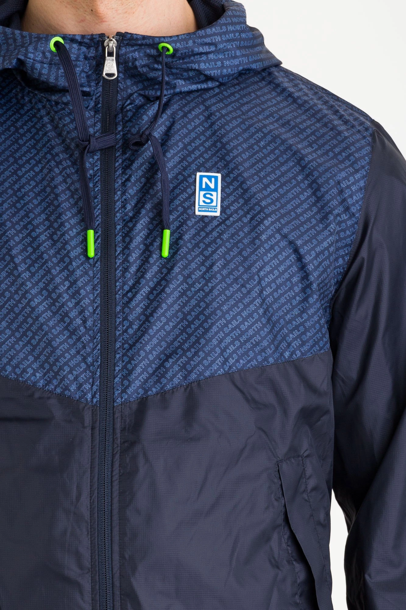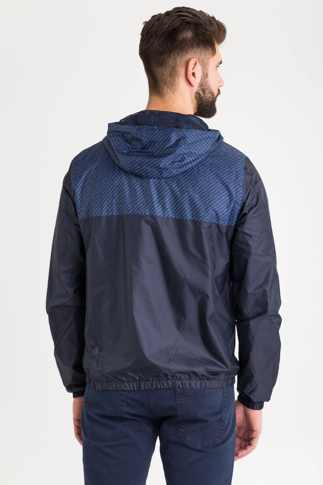 Kurtka w granatowym kolorze z kapturem. Kaptur regulowany przy pomocy granatowych troczków. Zapinana na granatowy zamek ze srebrną zawieszką w postaci logo marki. Po bokach dwie, niezapinane kieszenie. Rękawy i dół wykończone ściągaczem. Podszewka granatowa, w postaci siatki. Wykonana z wysokiej jakości materiałów, pochodzących z recyklingu. Lekka i wygodna.