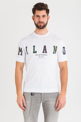 T-shirt w kolorze białym. Dekolt typu o-neck, wykończony ściągaczem. Z przodu duży, perłowy nadruk z nazwą. T-shirt wykonany z wysokiej jakości bawełny. Miękki, wygodny i lekko elastyczny.