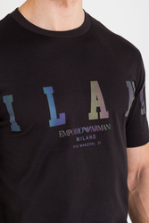 T-shirt w kolorze czarnym. Dekolt typu o-neck, wykończony ściągaczem. Z przodu duży, perłowy nadruk z nazwą marki. T-shirt wykonany z wysokiej jakości bawełny. Miękki, wygodny i lekko elastyczny.