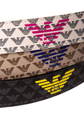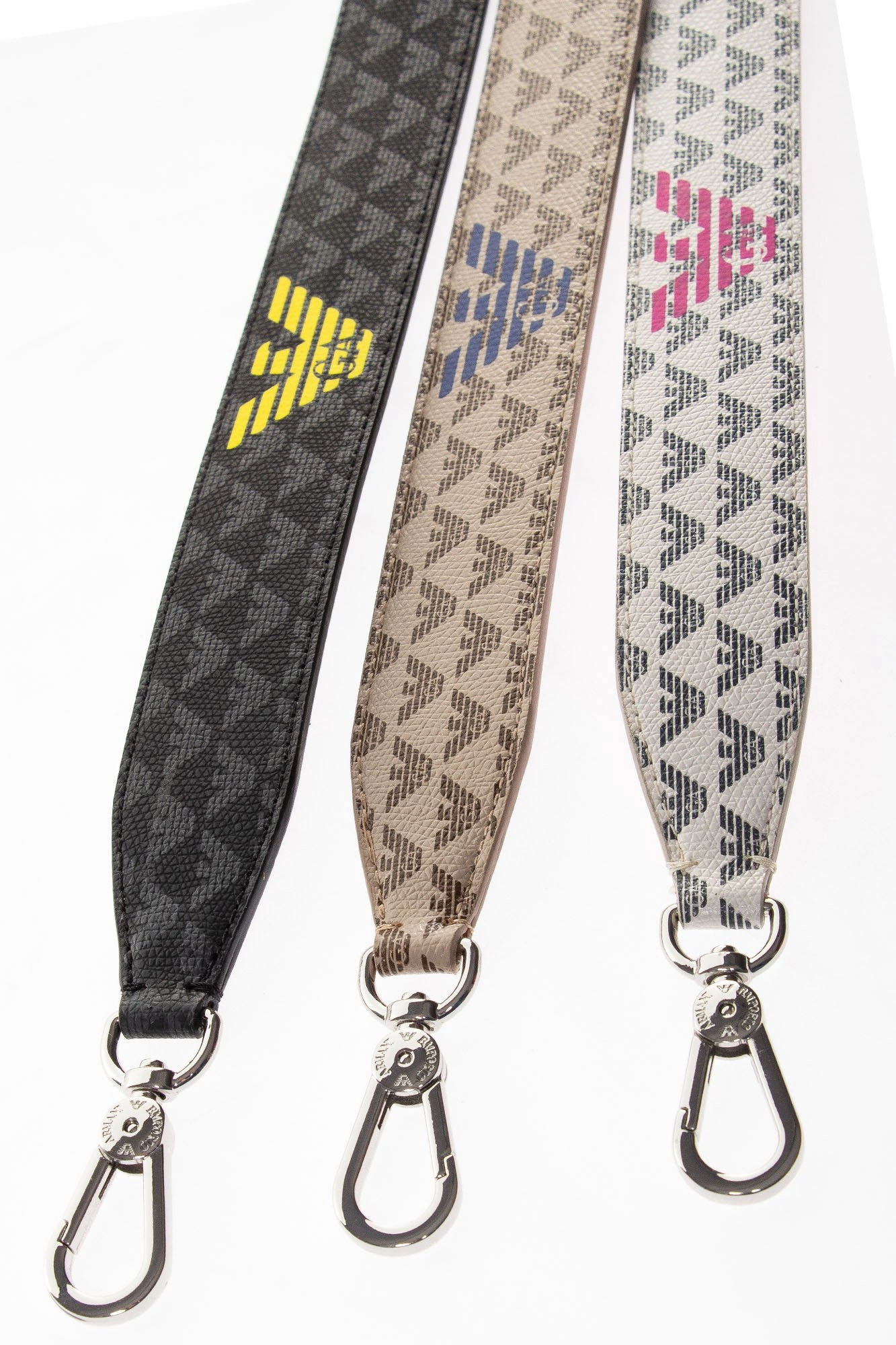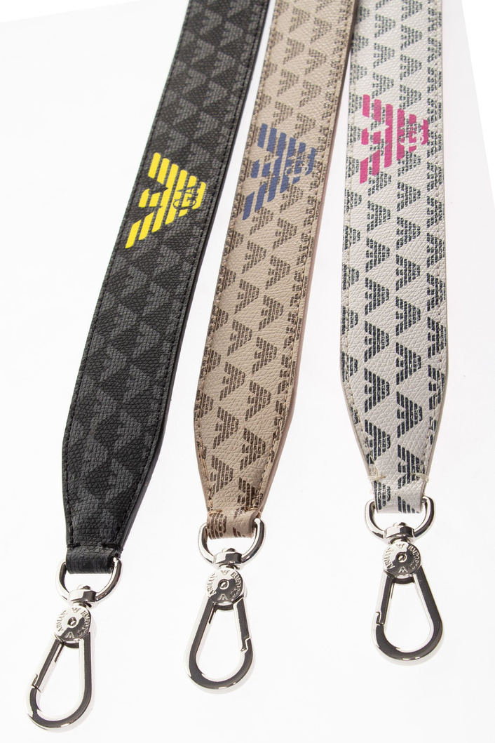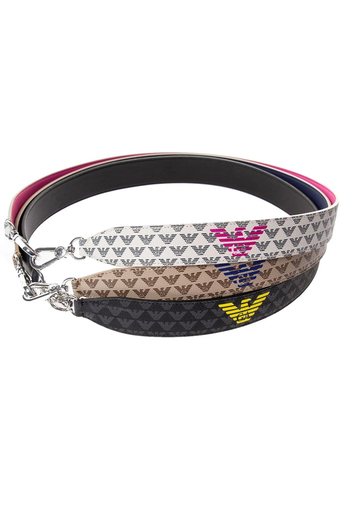 Paski do torebek Emporio Armani. W komplecie trzy sztuki w kolorach czarnym ,beżowym i białym. Na całości nadruki logo marki. Mocowane przy pomocy srebrnych karabińczyków. Wykonane z wysokiej jakości skóry ekologicznej.