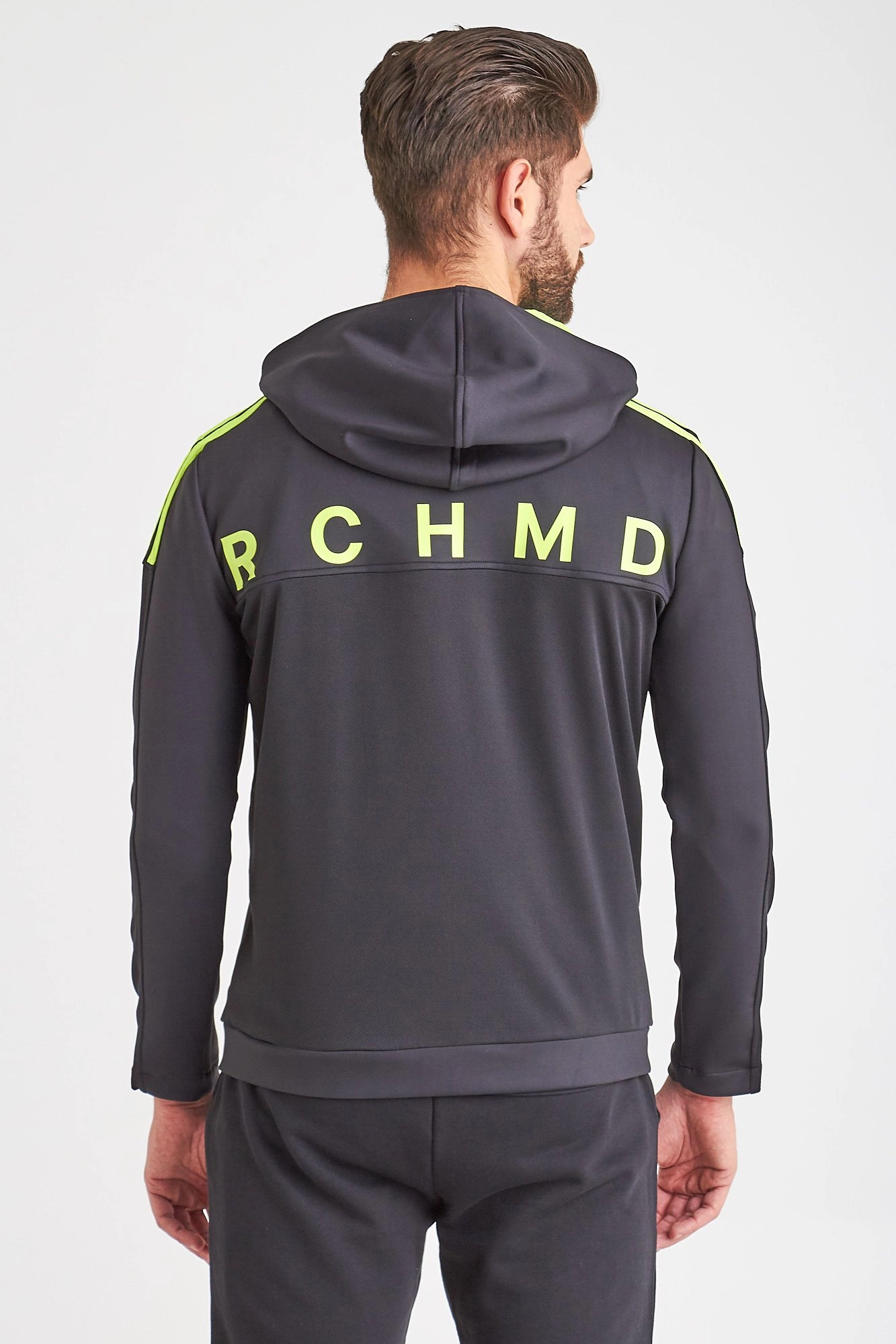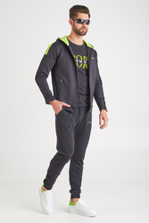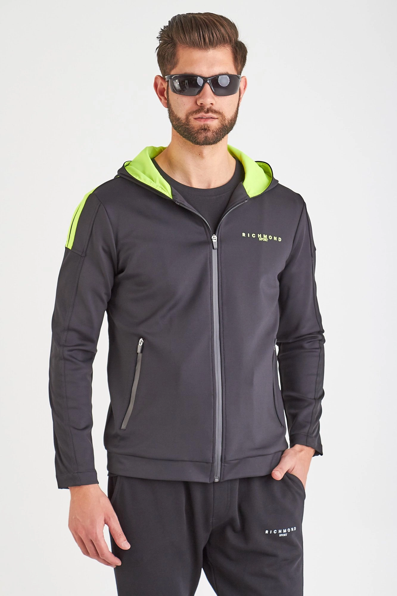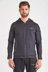 Kurtka w czarnym kolorze z kapturem. Zapinana na zamek ukryty pod taśmami. Ramiona oraz wnętrze kaptura w kolorze limonkowym. Z lewej strony i na plecach nadruk nazwy marki również w limonkowym kolorze. Po bokach dwie, zapinane na zamki kieszenie. Lekka i dopasowana. Wykonana z wysokiej jakości materiału.