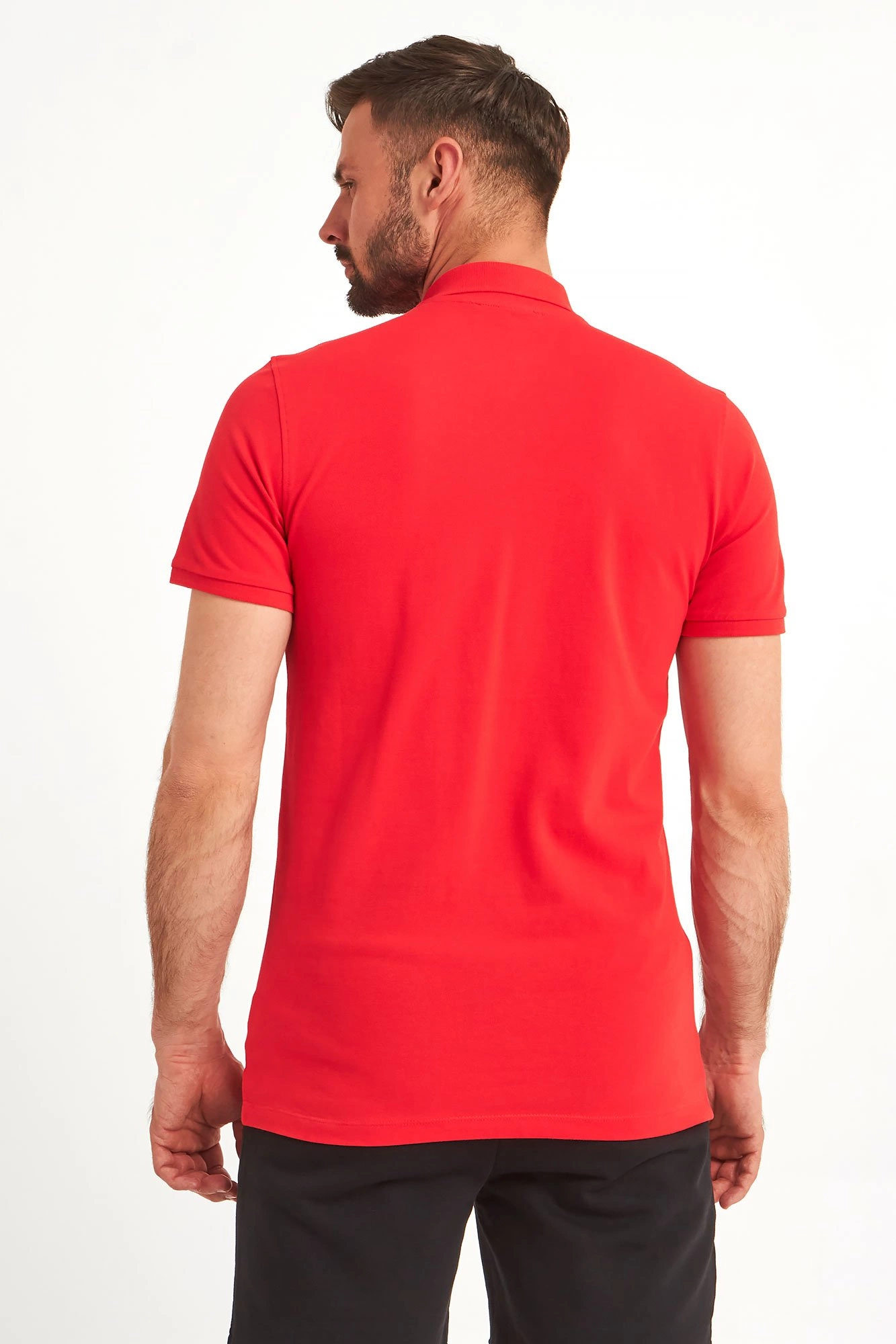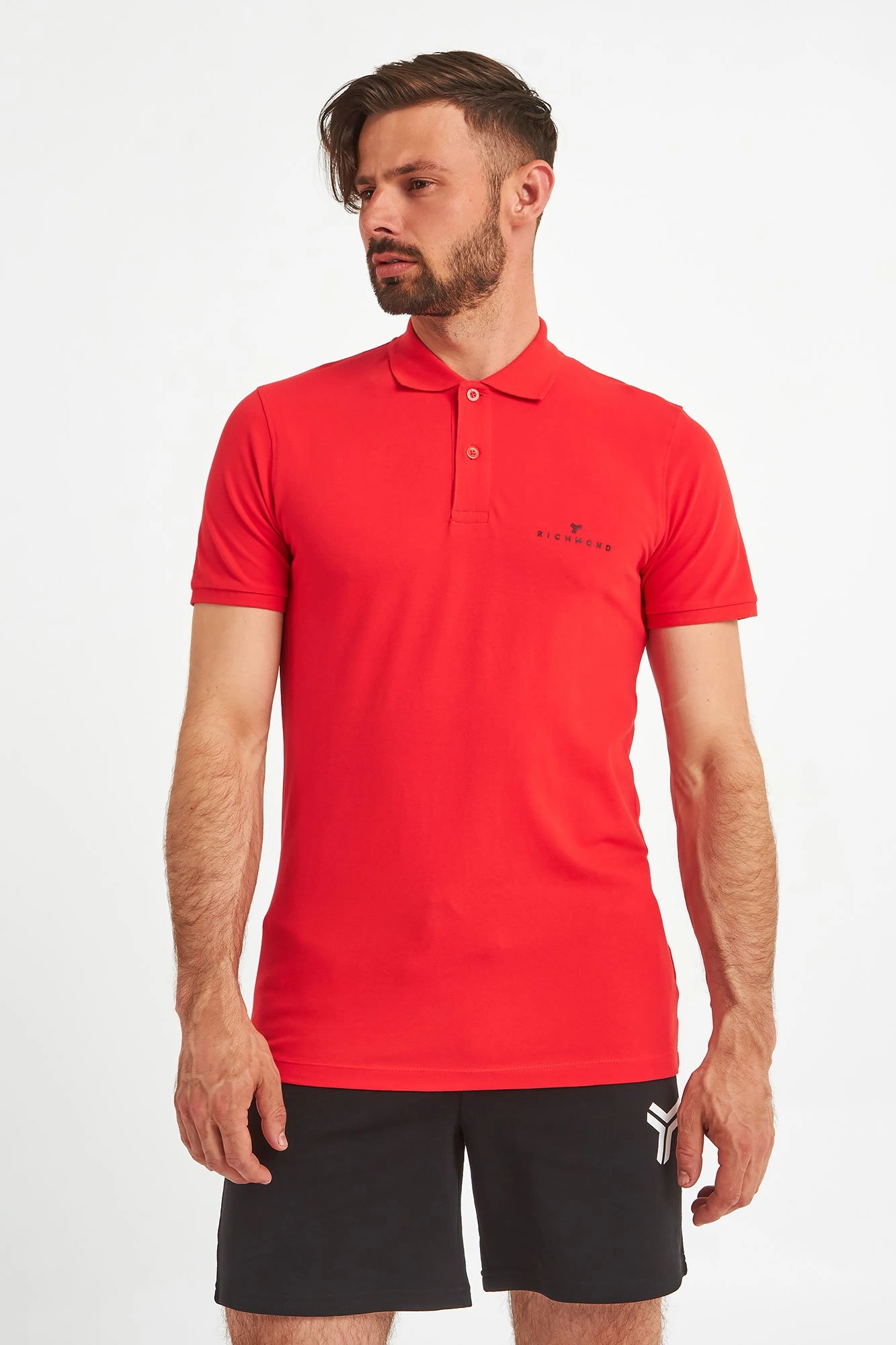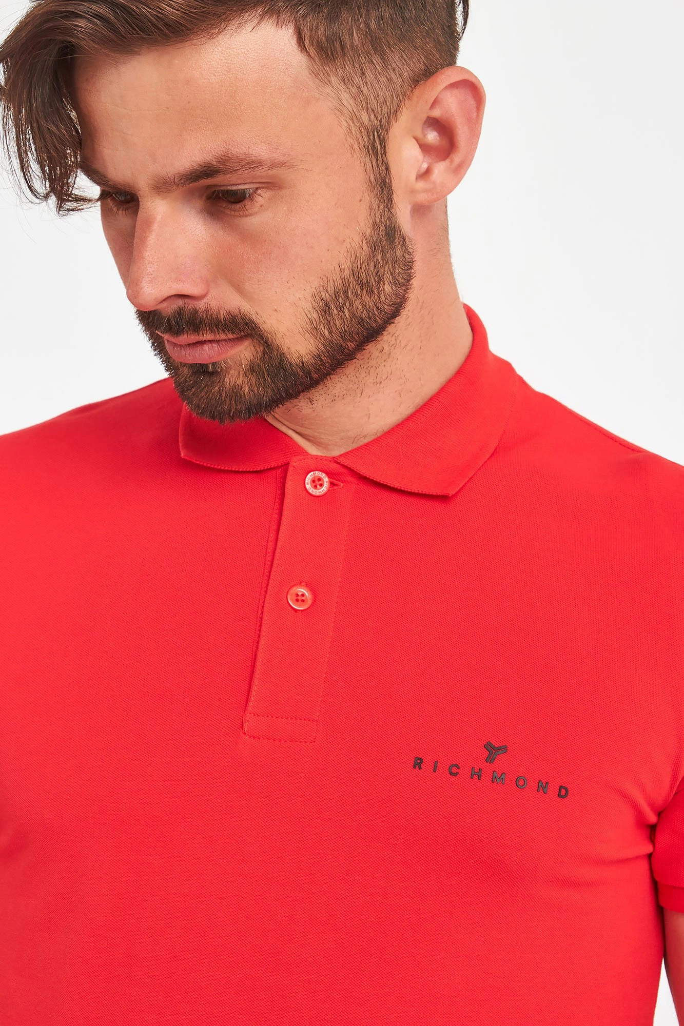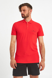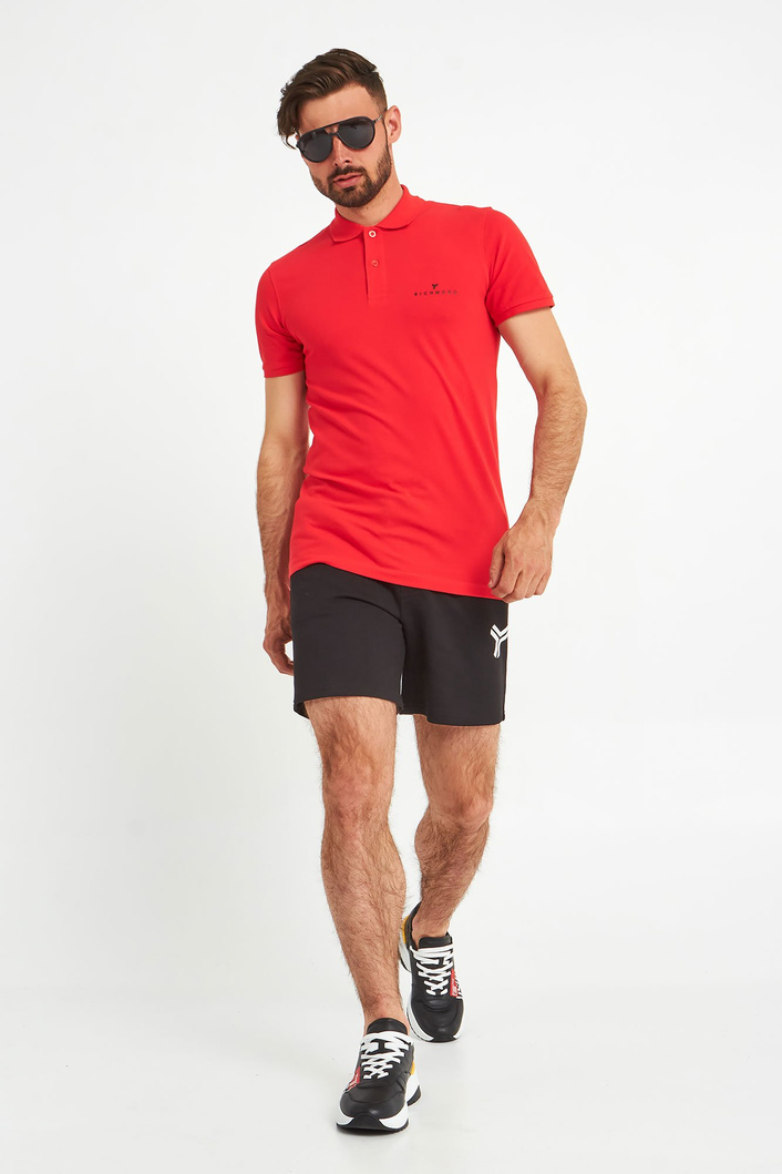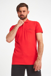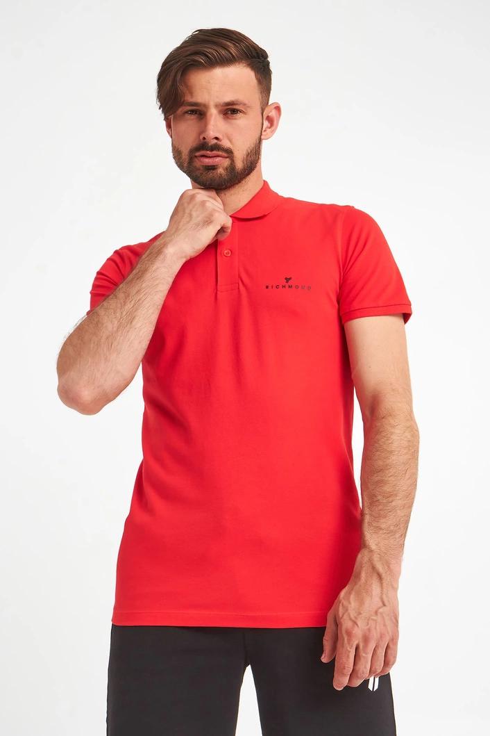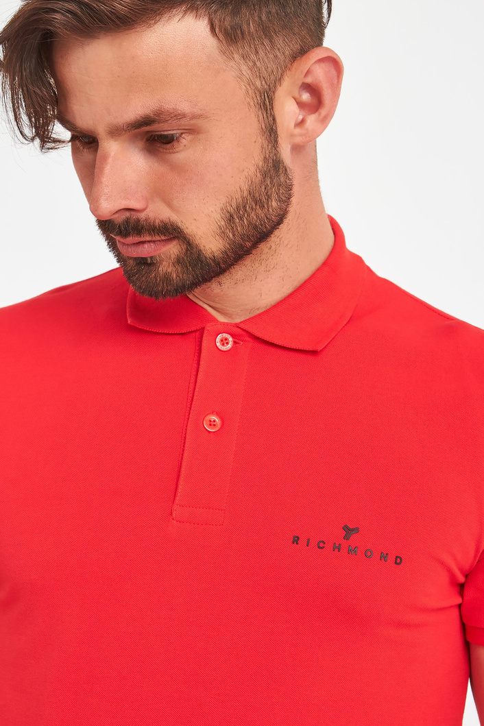 Polo marki John Richmond Sport. W żywym, energetyzującym, czerwonym kolorze. Regularny krój. Klasyczny kołnierz zapinany za pomocą sygnowanych guzików. Na piersi czarne logo. Krótkie, proste rękawy zakończone ściągaczami. Dół wykończony lamówką. Wykonane z czystej, przyjemnej w dotyku, miękkiej, elastycznej tkaniny. Idealne jako baza każdej stylizacji. Nada jej charakteru, niebanalności, ponadczasowości i nutki elegancji.