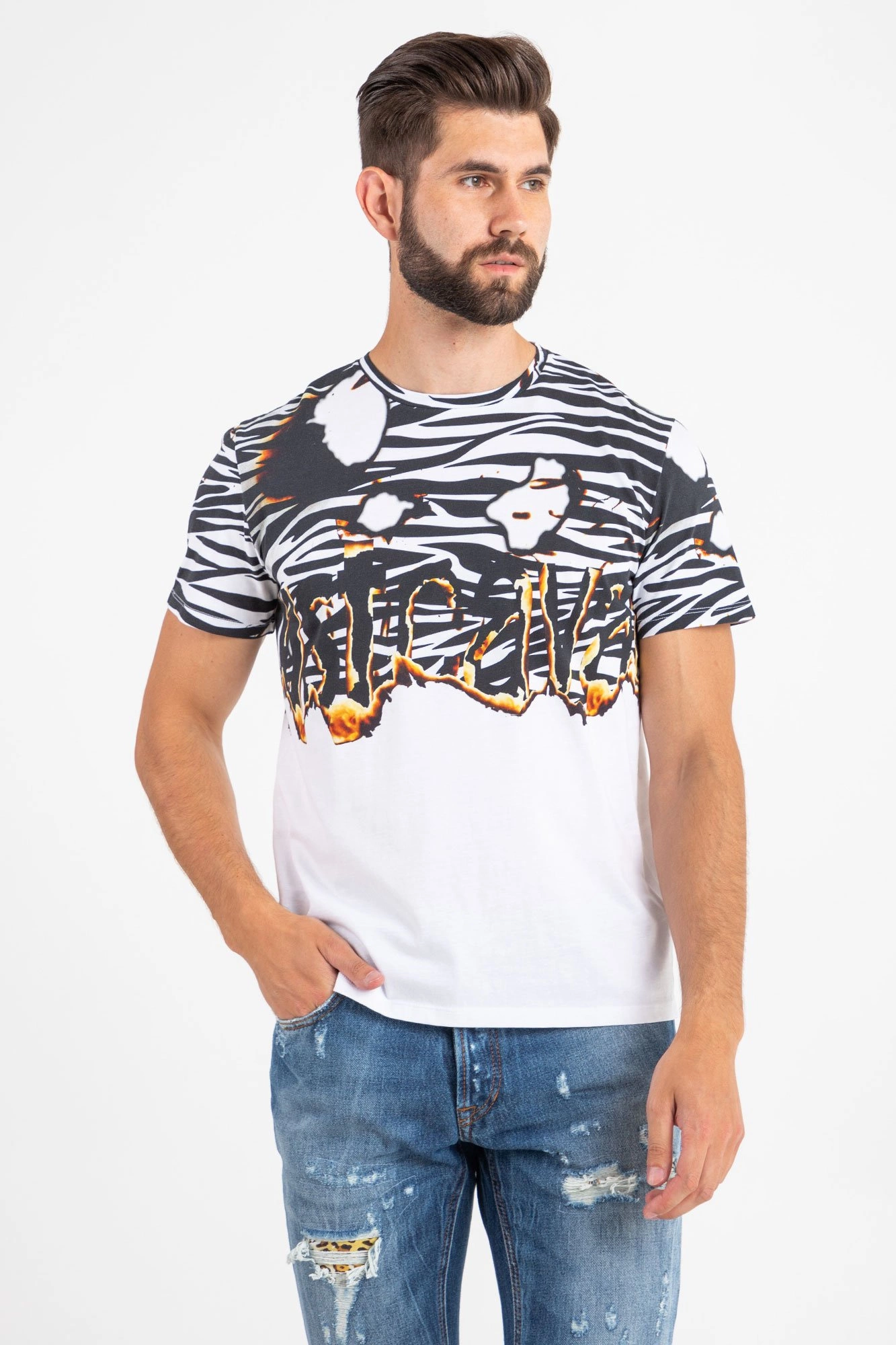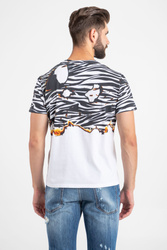 T-shirt w kolorze białym. Fason prosty. Dekolt typu o-neck wykończony ściągaczem. Na ramionach z przodu i z tyłu kolorowy print ze zwierzęcym motywem. Na nim duże logo marki. T-shirt wykonany z najwyższej jakości bawełny. Komfortowy i przewiewny. Doskonale sprawdzi się jako baza oryginalnej letniej stylizacji.