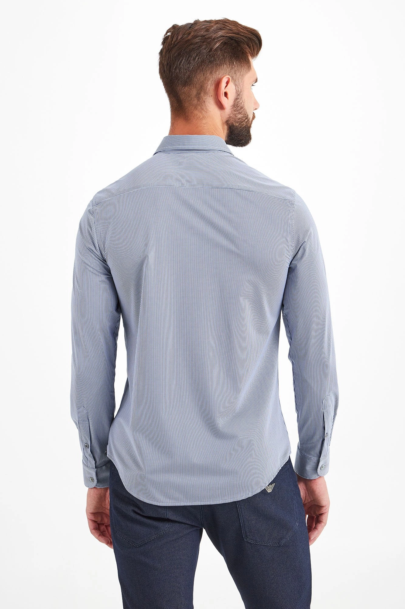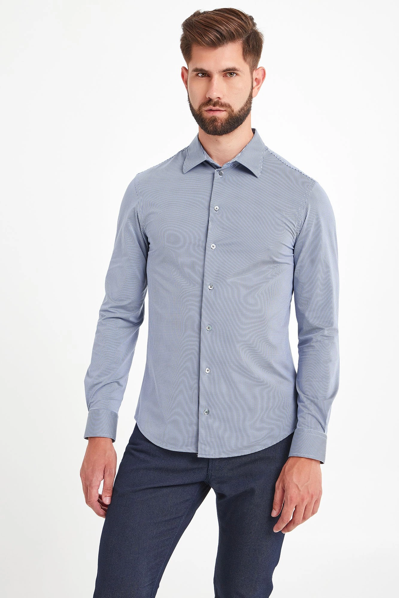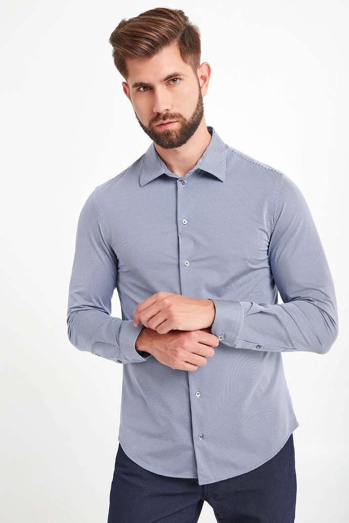 Koszula w niebiesko-białą kratę. Zapinana na szare guziki sygnowane logo marki. Fason regular fit. Kołnierzyk prosty typu kent. Rękawy wykończone okrągłym mankietem, zapinanym na jeden guzik. Koszula wykonana z wysokiej jakości materiałów, z użyciem technologii, która zapobiega powstawaniu zagnieceń. Sprawdza się w trakcie podróży. Lekka, przyjemna w dotyku. Dla eleganckiego mężczyzny ceniącego komfort noszenia i perfekcyjny wygląd przez cały dzień.