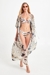 Dwuczęściowy strój kąpielowy w odcieniach brązu i beżu. Na całości zwierzęcy motyw. Miseczki lekko usztywnione. Wykonany z najwyższej jakości szybkoschnącego materiału. Komfortowy i stylowy.