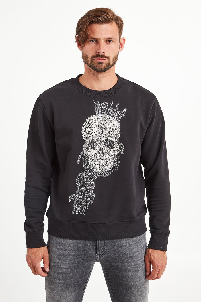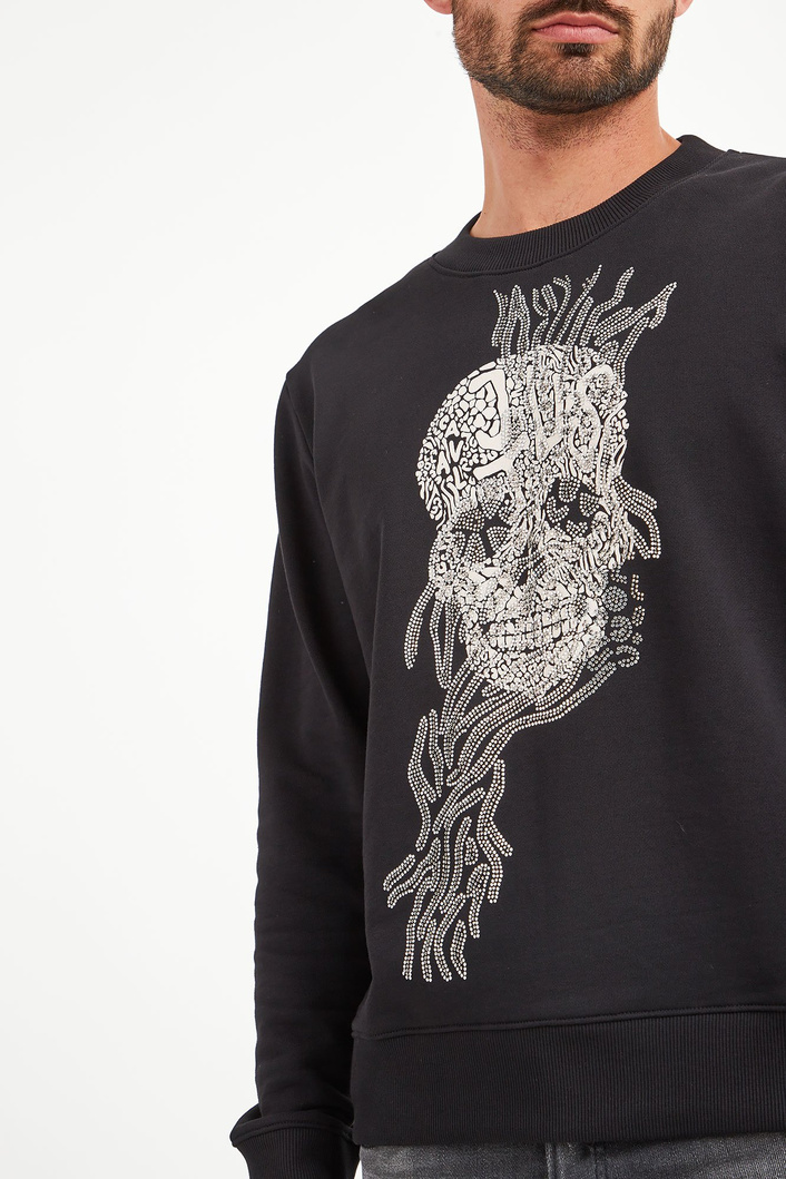 Bluza w czarnym kolorze o prostym fasonie. Z przodu połyskujący nadruk z kryształków charakterystyczny dla marki. Dekolt, rękawy i dół wykończone ściągaczem. Bluza wykonana z najwyższej jakości, niezwykle miękkiej w dotyku bawełny. Doskonałe połączenie wygody i stylowego, włoskiego designu.