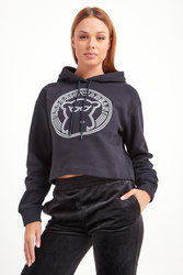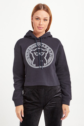 Komfortowa bluza w granatowym kolorze z kapturem. Fason krótki, nieco luźniejszy. Kaptur regulowany za pomocą troczków. Z przodu duży, kontrastowy haft z misiem i nazwą marki. Rękawy zakończone ściągaczem. Bluza wykonana z najwyższej jakości bawełny. Doskonała baza do codziennych stylizacji utrzymanych w sportowym stylu.