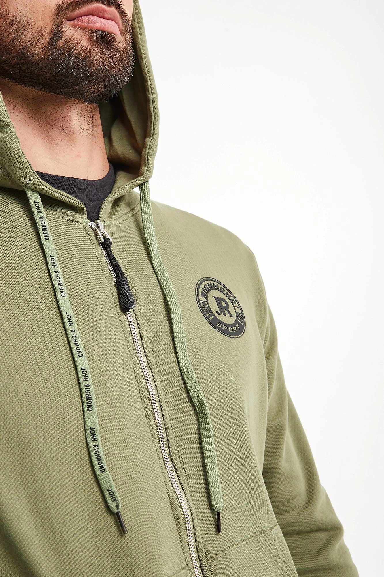 Bluza w kolorze khaki z kapturem. Zapinana na srebrny zamek z logowaną zawieszką. Kaptur regulowany za pomocą troczków z nadrukiem. Z przodu aplikacja z nazwą i logo marki. Poniżej dwie kieszenie. Z tyłu duży, czarny nadruk z logo. Rękawy i dół wykończone ściągaczem. Na dole logowana naszywka. Bluza wykonana z wysokiej jakości bawełny. Wygodna i przyjemna w dotyku.