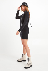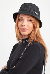 Czapka typu bucket hat w czarnym kolorze marki John Richmond. Na całości wzór logo marki. Z przodu niewielka aplikacja z nazwą marki. Wykonana z wysokiej jakości materiału. Wygodna i komfortowa.