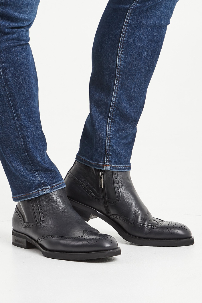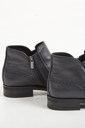 Eleganckie półbuty w granatowym kolorze. Nosek zaokrąglony. Zapinane od wewnątrz na sygnowany zamek. Elastyczna wstawka, ułatwiająca zakładanie. Na całości ozdobne wstawki z tłoczeniami. Podeszwa czarna z tłoczeniem nazwy marki, o wysokości ok. 3 cm. Półbuty wykonane z wysokiej jakości skóry naturalnej. W komplecie worek przeciwkurzowy.