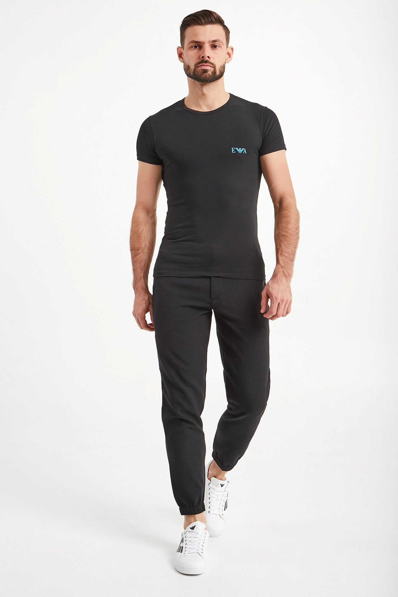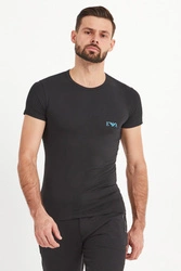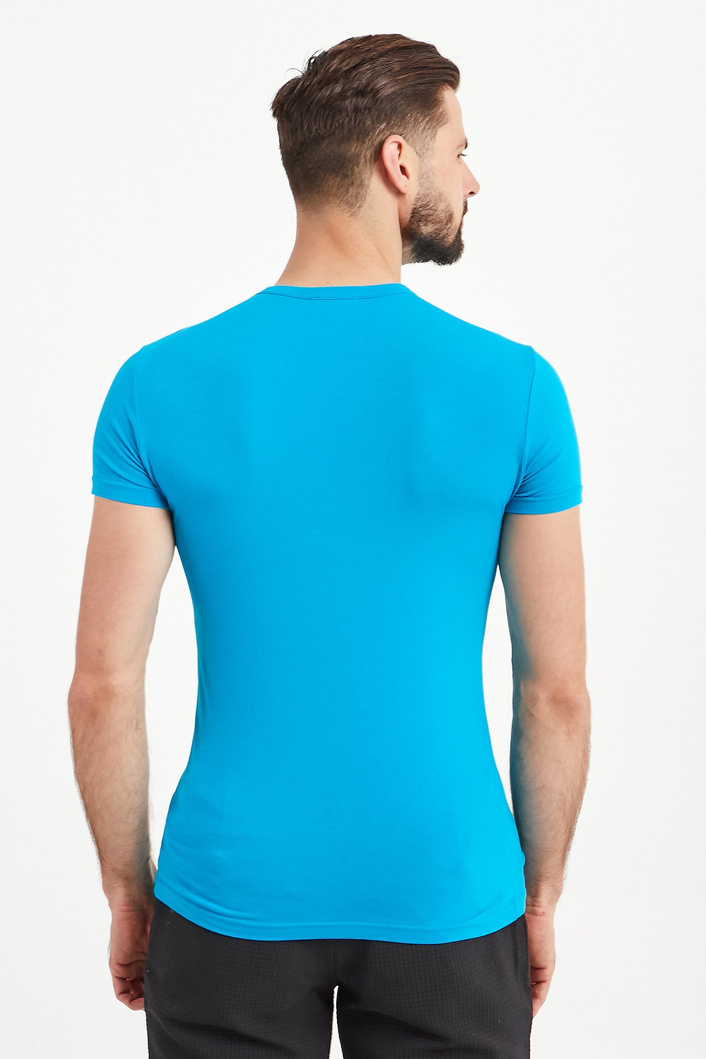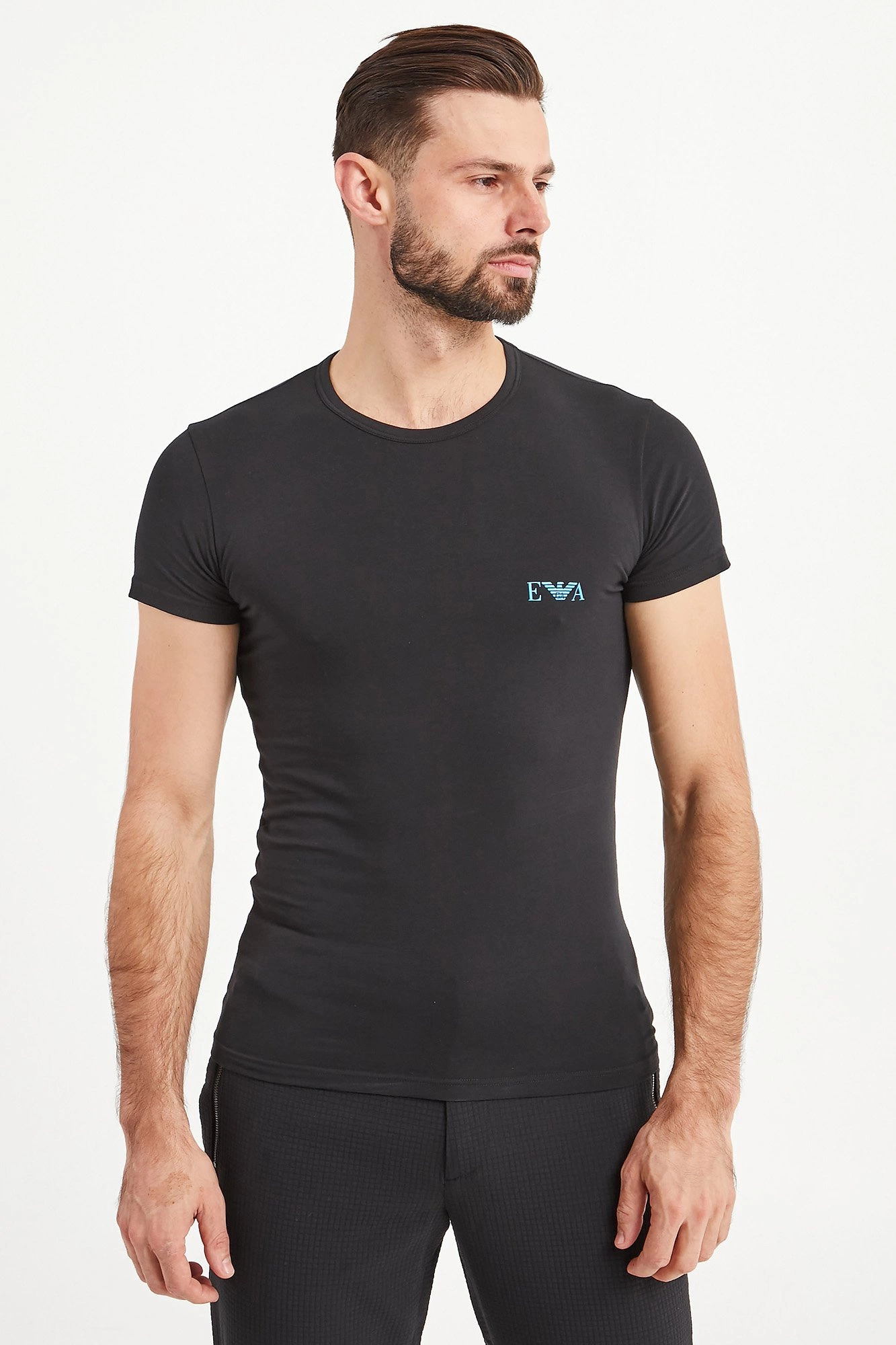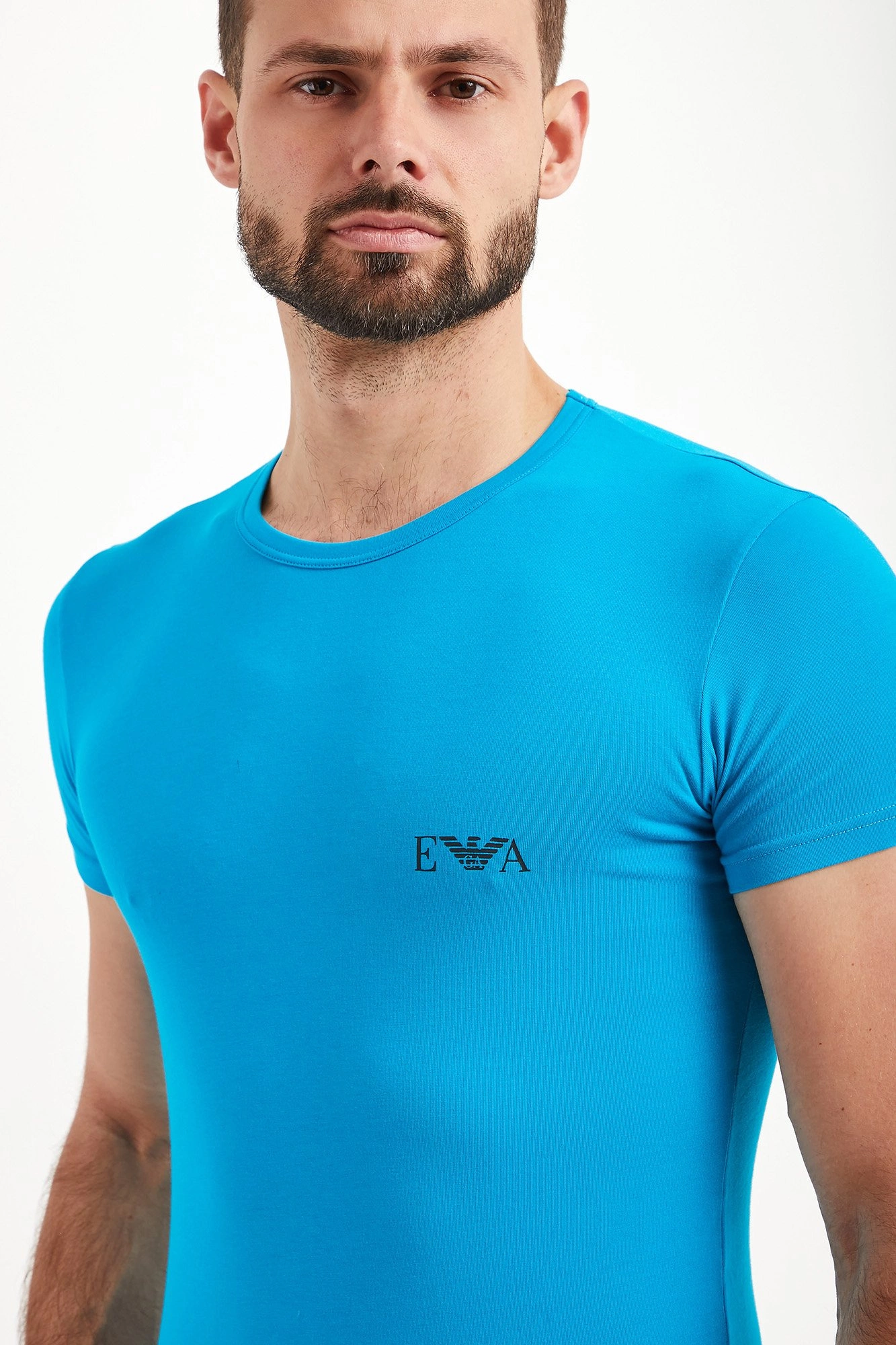 Dwupak t-shirtów o dopasowanym fasonie. Dekolt typu o-neck. Jeden t-shirt w czarnym kolorze, drugi intensywnie niebieski. Na obu niewielkie kontrastowe logo marki. T-shirty wykonane z najwyższej jakości bawełny z dodatkiem elastanu. Wygodne i elastyczne.