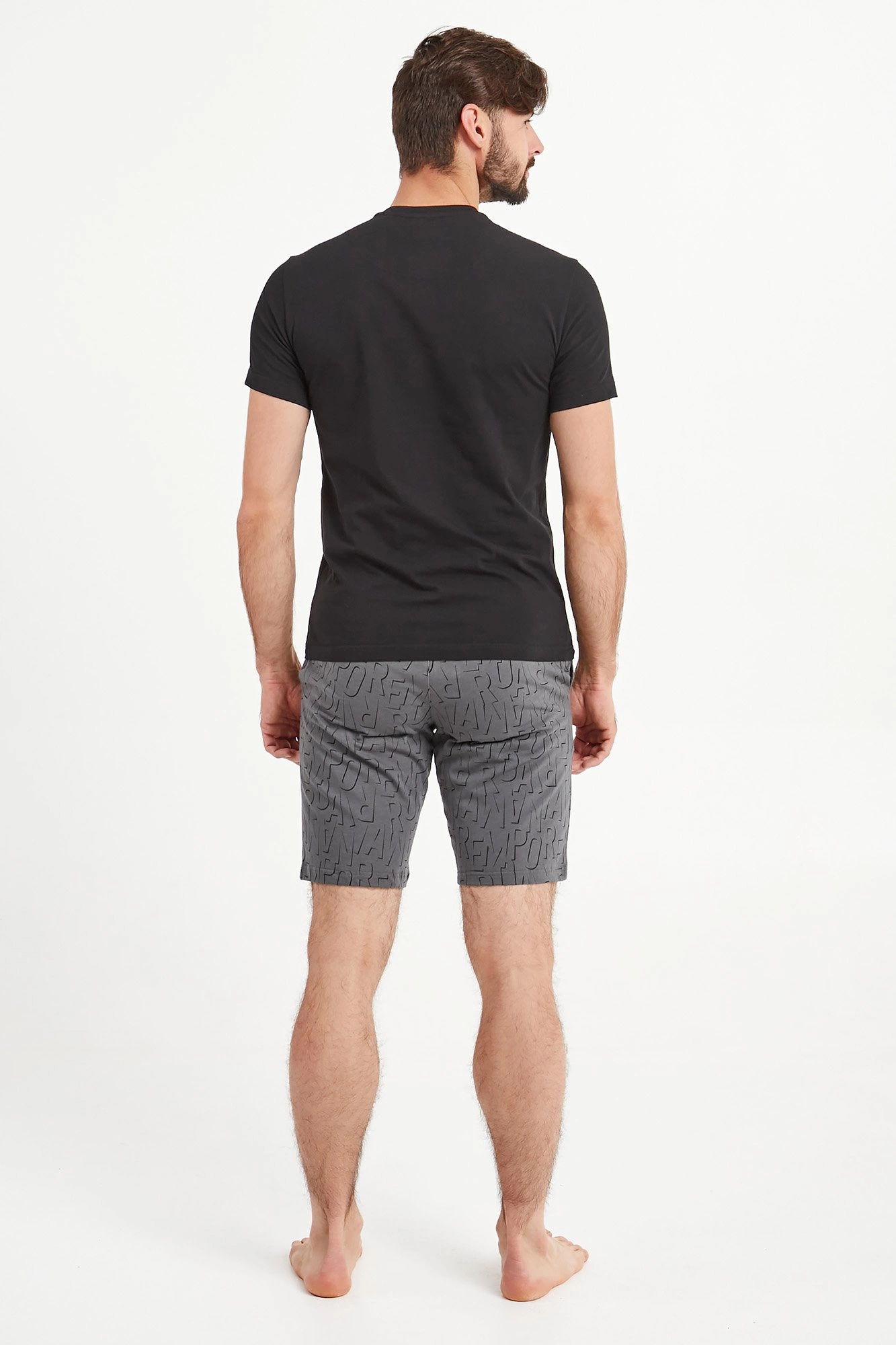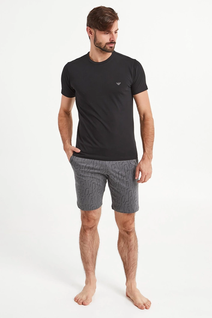 Komfortowa piżama wykonana z wysokiej jakości bawełny. Góra w czarnym kolorze z krótkim rękawem. Z przodu niewielkie logo marki.