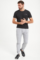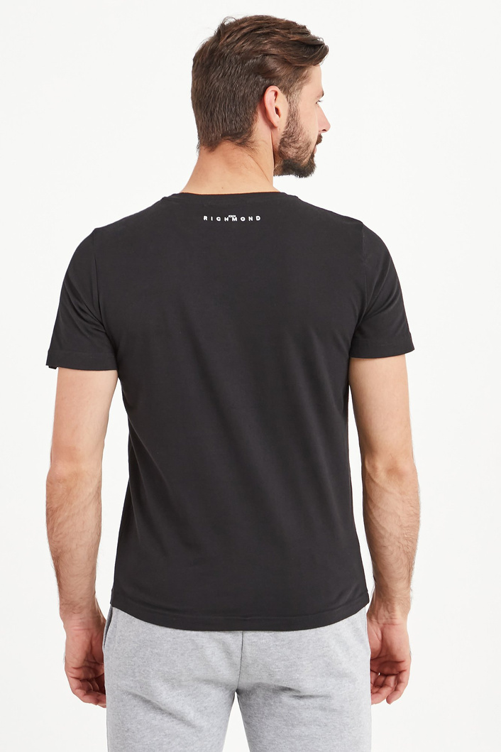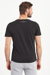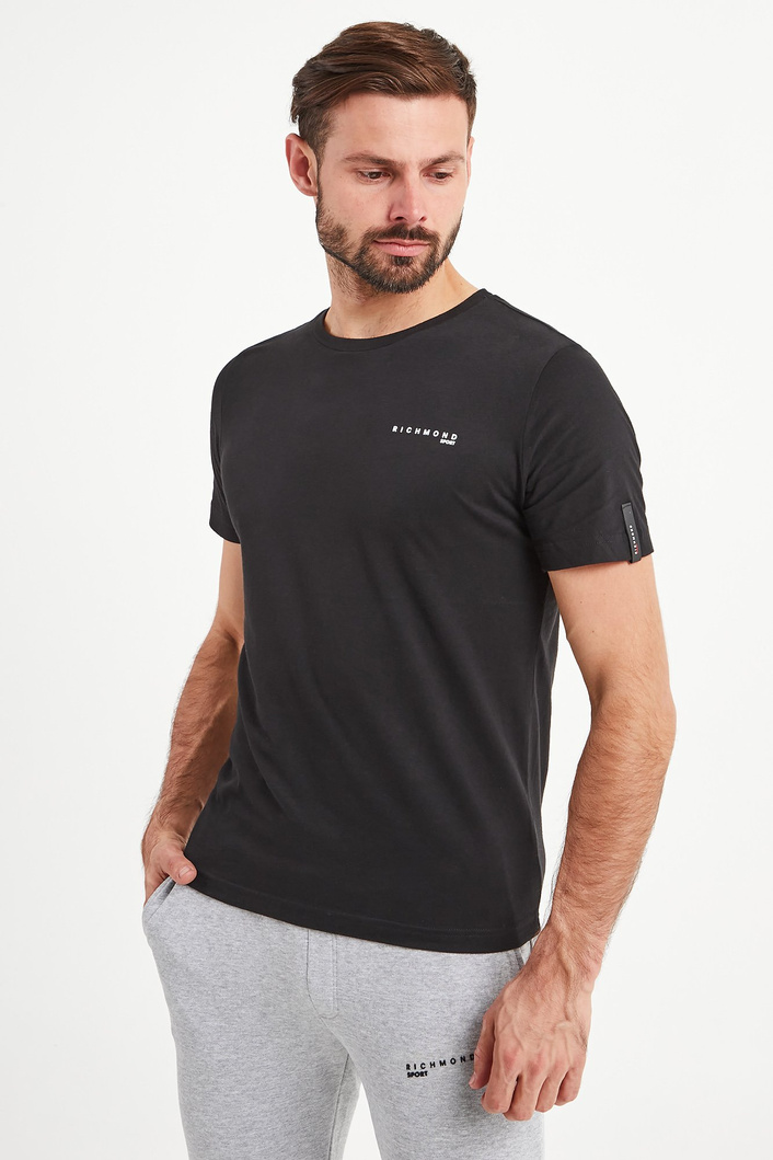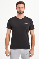 T-shirt w czarnym kolorze. Fason prosty. Dekolt typu o-neck wykończony ściągaczem. Z przodu niewielki biały nadruk z nazwą marki. Na rękawie logowana naszywka. Z tyłu na wysokości karku niewielki nadruk. T-shirt wykonany z najwyższej jakości bawełny. Miękki w dotyku i przewiewny.