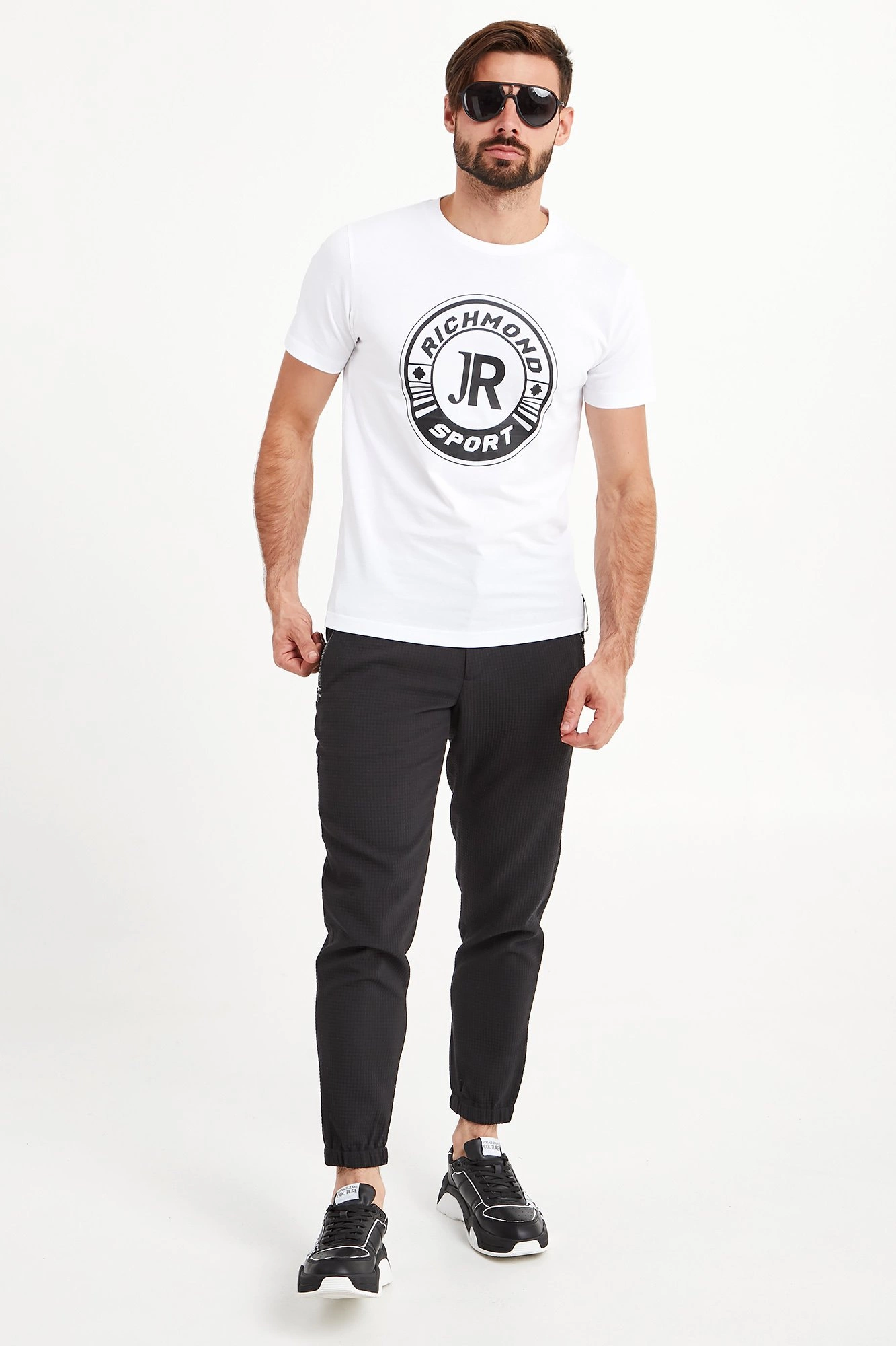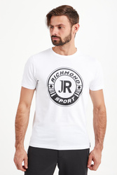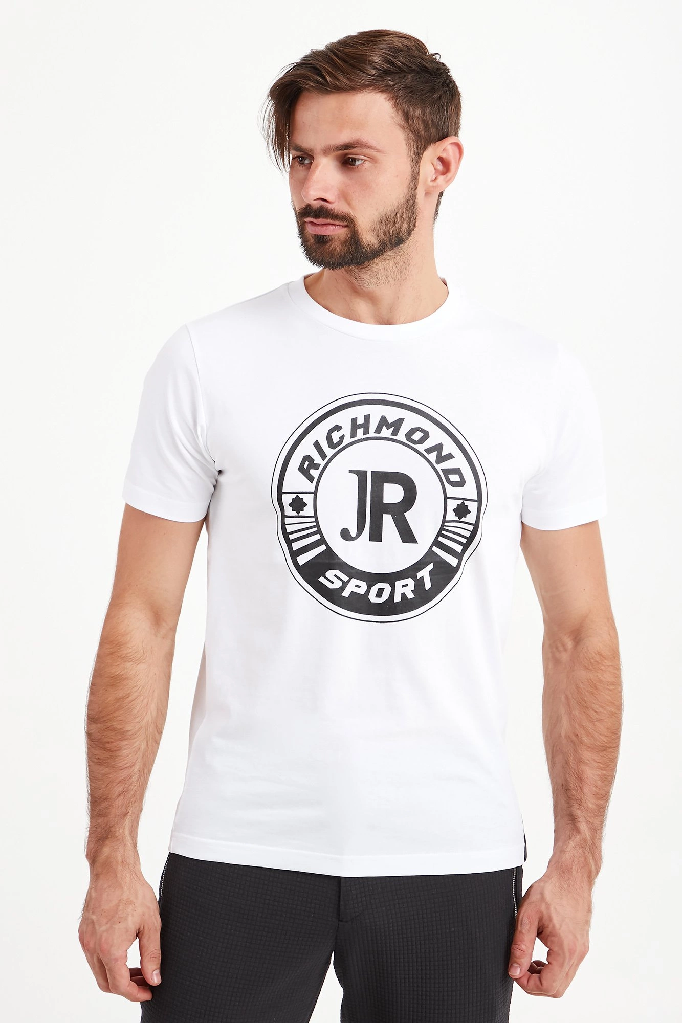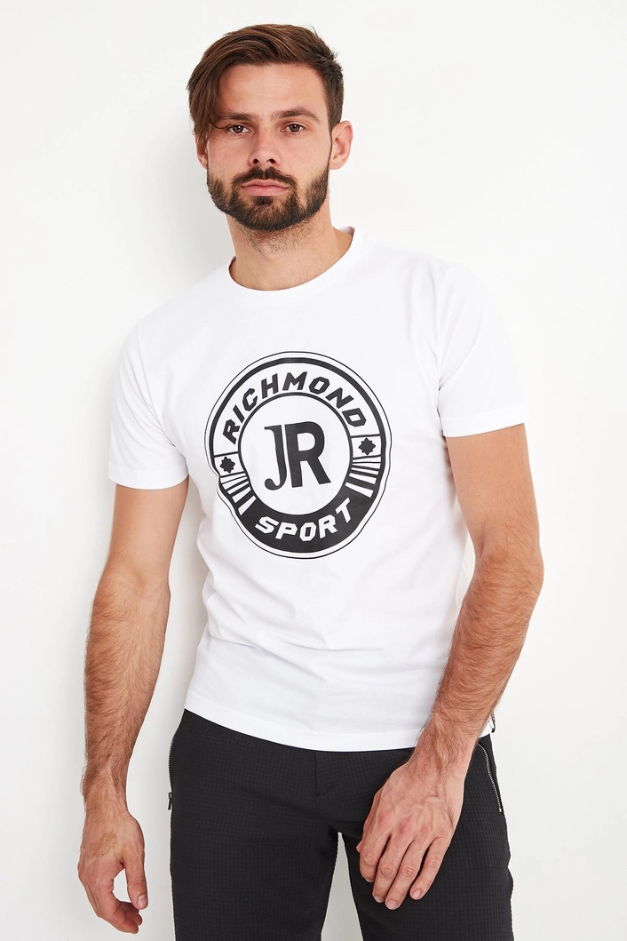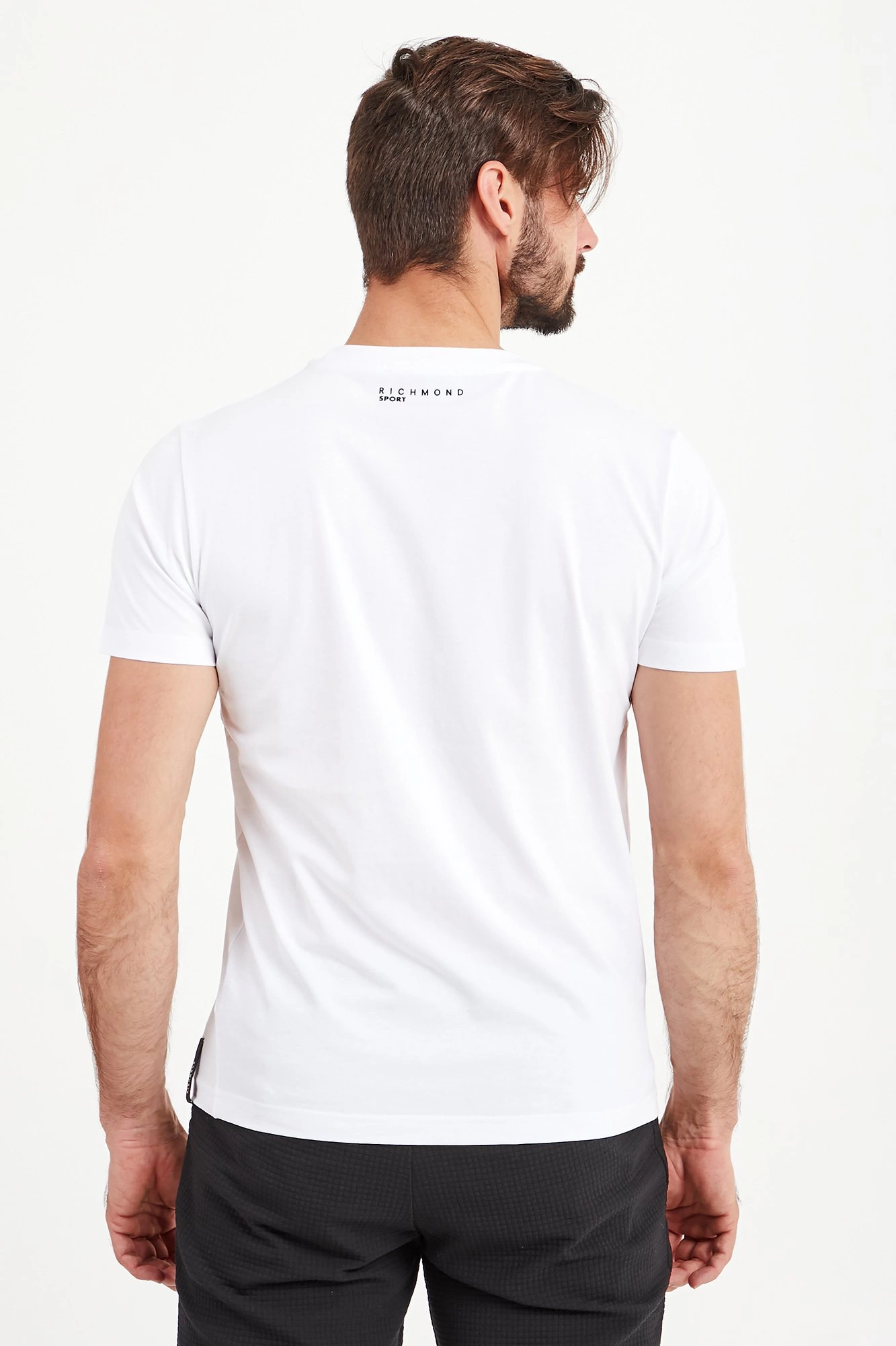 Biały t-shirt o prostym fasonie. Dekolt typu o-neck. Z przodu duży nadruk z logo marki. Z tyłu, na wysokości karku napis z nazwą. T-shirt wykonany z wysokiej jakości bawełny. Miękki, przewiewny i bardzo komfortowy.