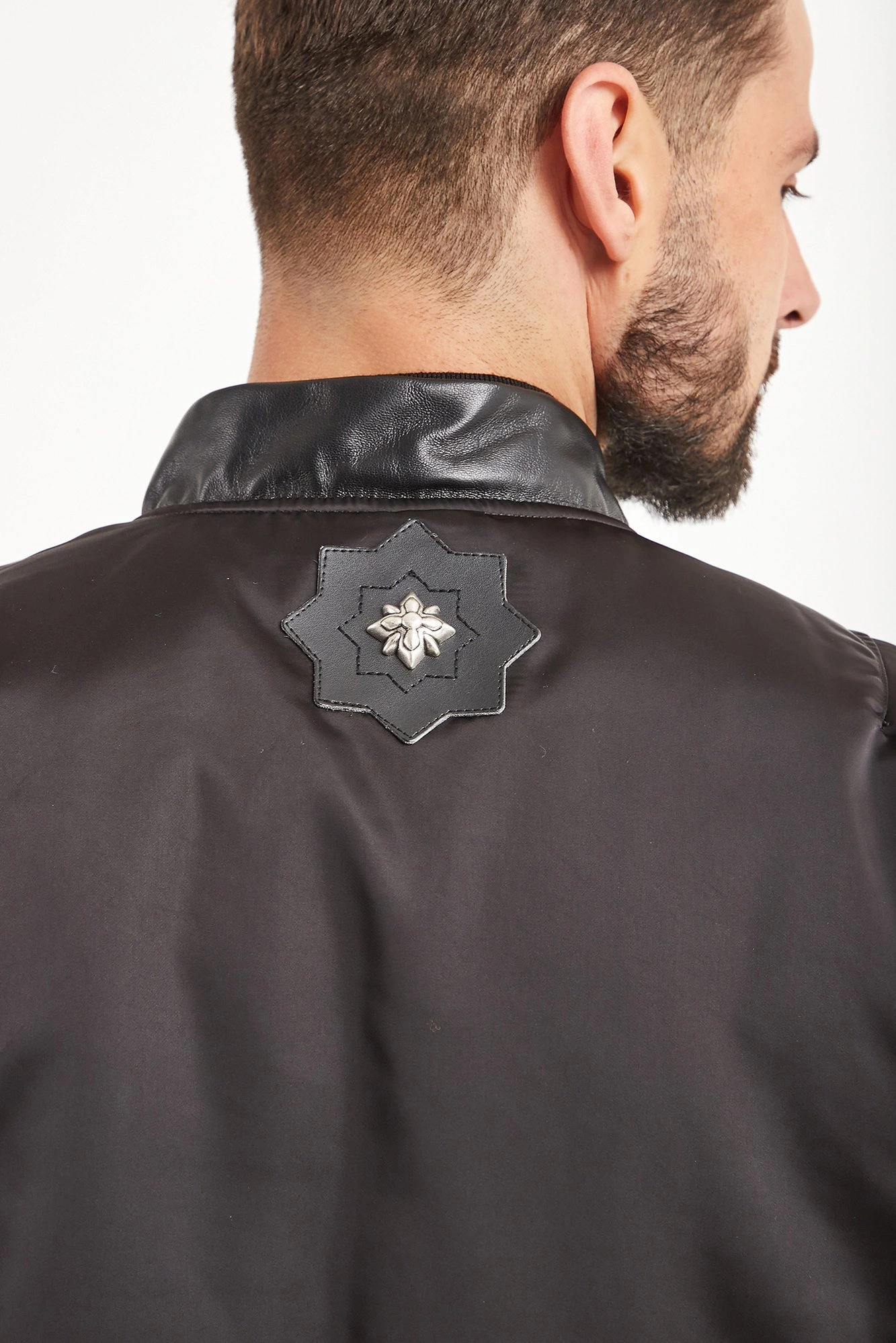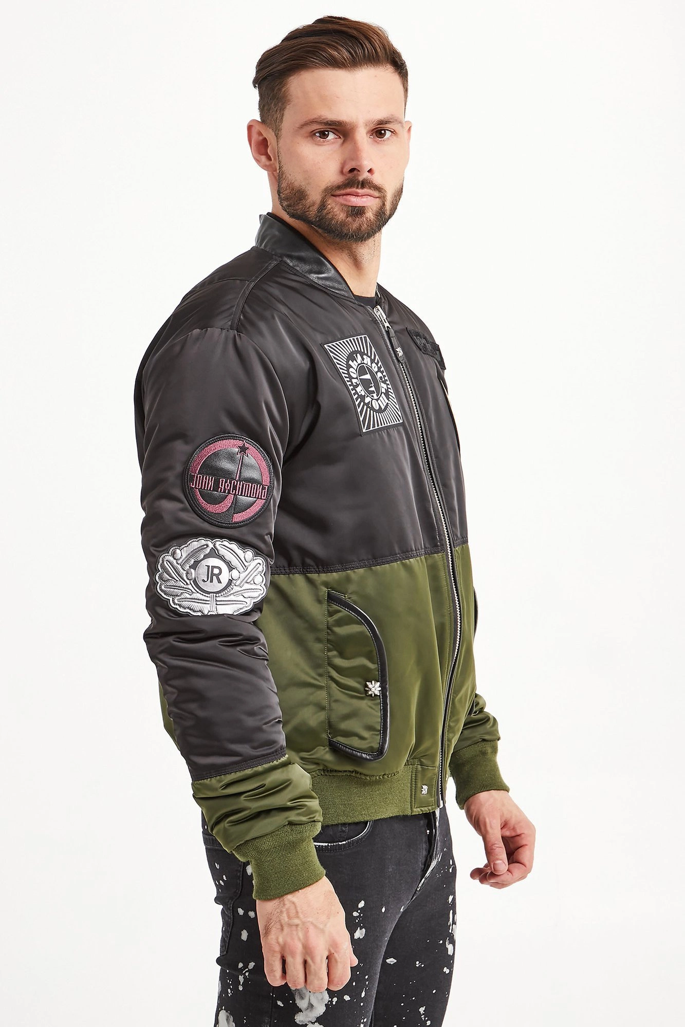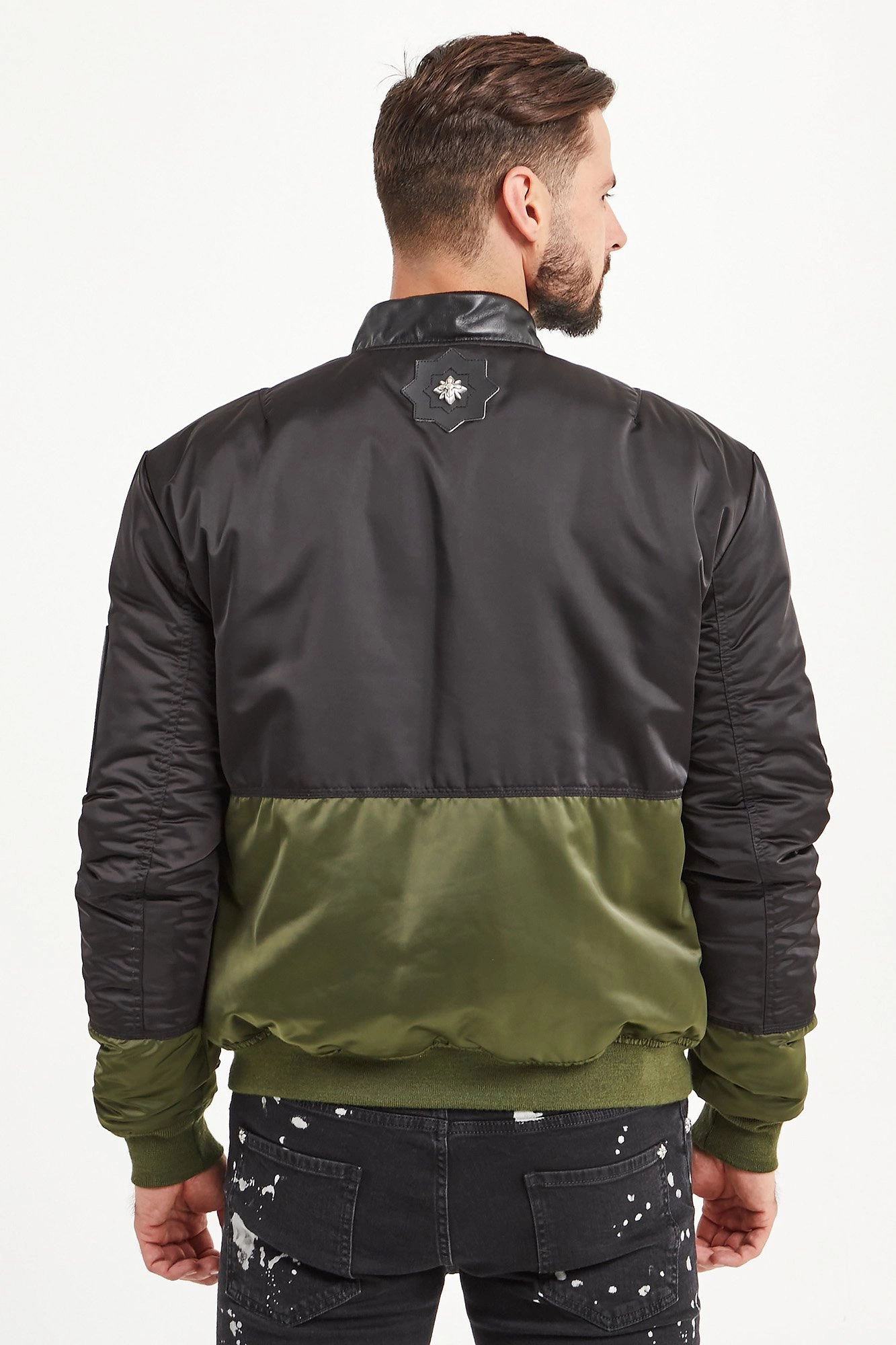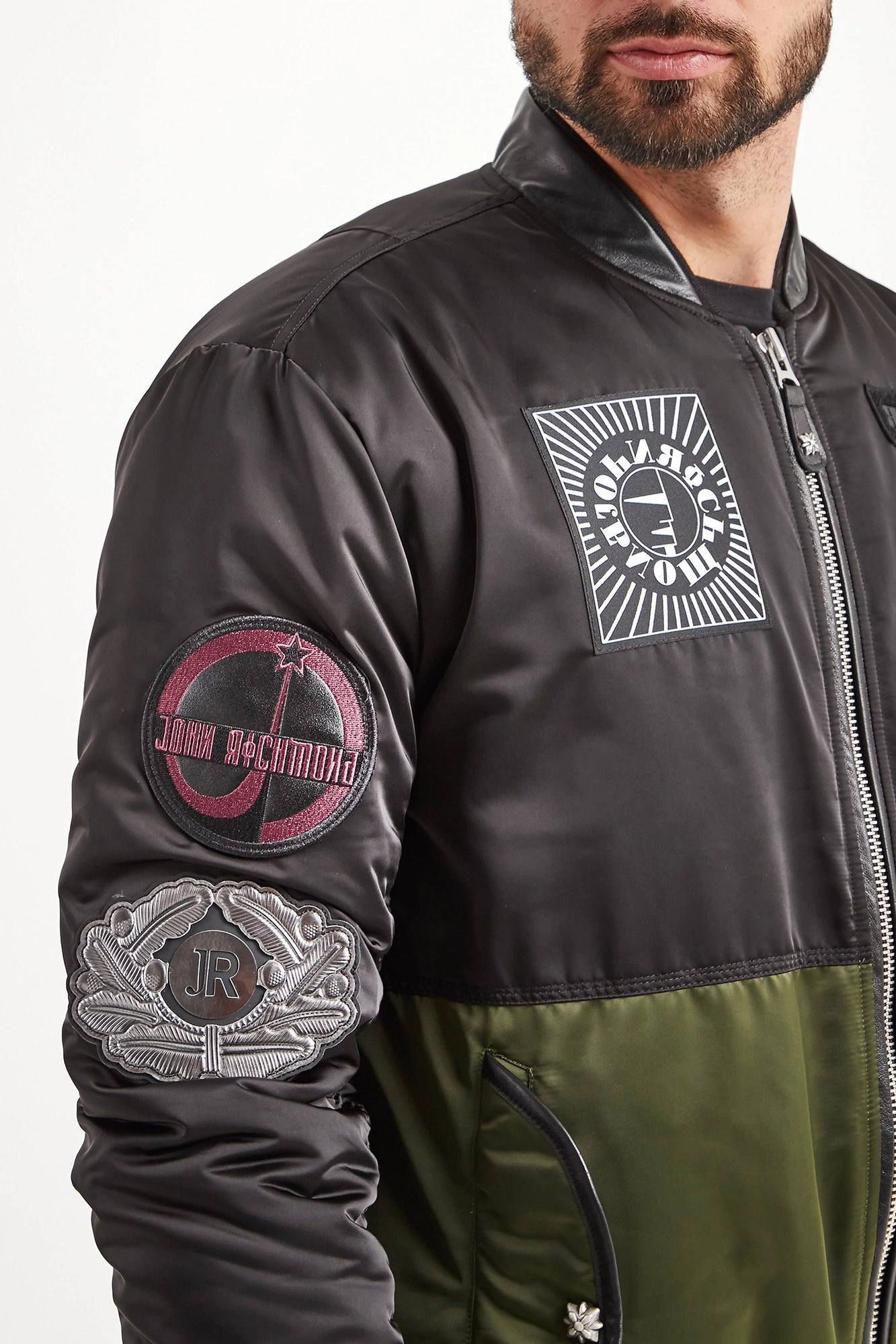 Efektowna, dwukolorowa bomberka o nieco luźniejszym fasonie. Dekolt wykończony skórzaną stójką. Zapinana na zamek z sygnowaną zawieszką. Z przodu liczne, wielokolorowe naszywki oraz dwie kieszenie. Rękawy i dół wykończone ściągaczem. Na jednym z nich kieszeń z dekoracyjnym zamkiem i tłoczeniem nazwy marki. Z tyłu, na wysokości karku aplikacja z metalowym logo. Kurtka wykonana z najwyższej jakości materiałów. Ciepła, lekka i stylowa.