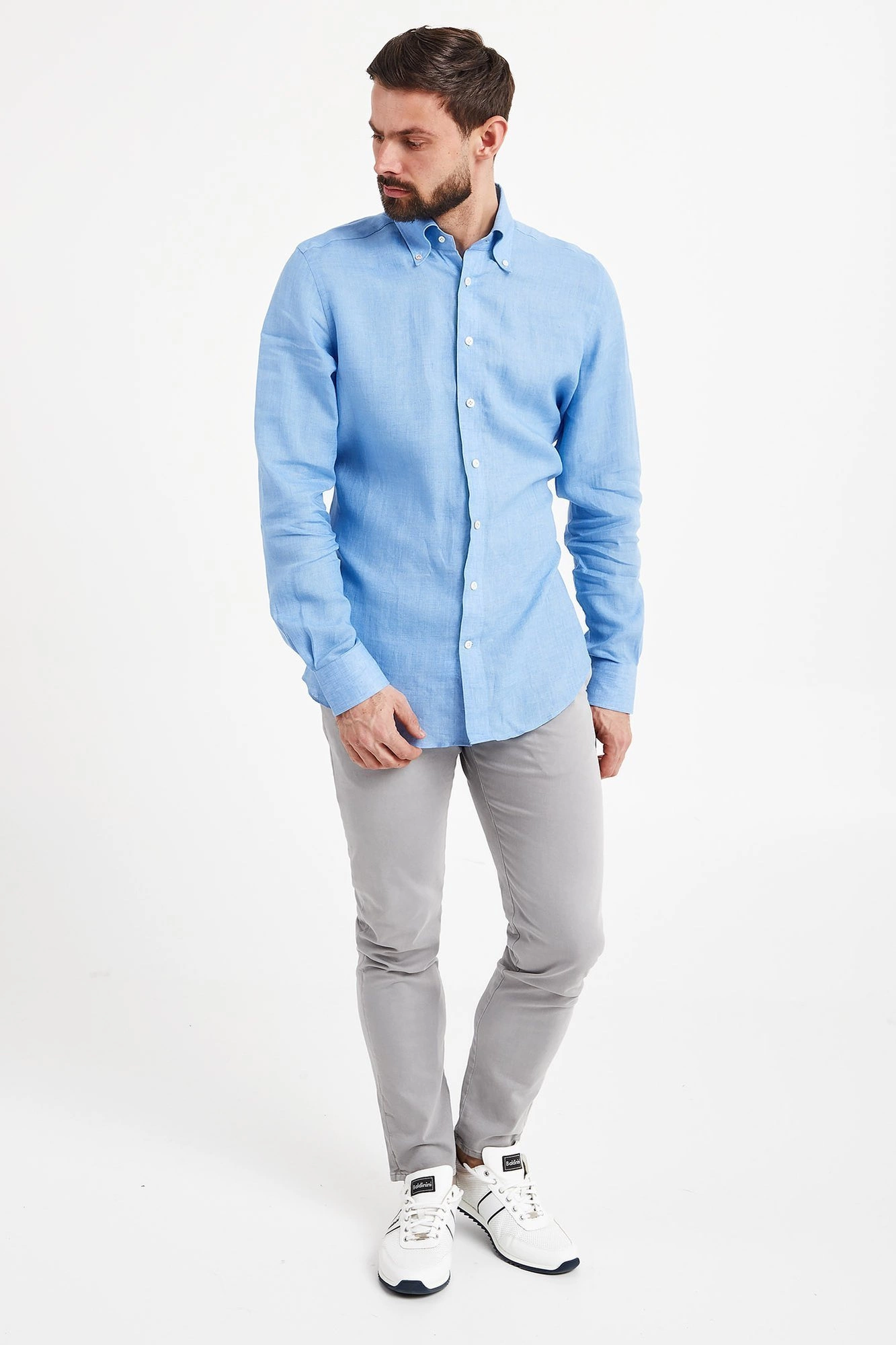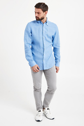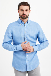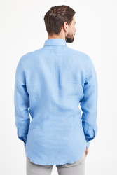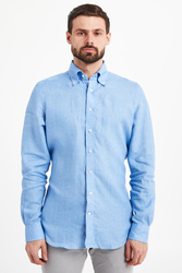Koszula w błękitnym kolorze. Zapinana na niewielkie guziki. Fason modern fit. Rękawy wykończone prostym mankietem zapinanym na jeden guzik. Koszula wykonana z wysokiej jakości bawełny. Elegancka, stylowa i ponadczasowa. Idealna propozycja zarówno do dziennych, jak i wieczorowych stylizacji.