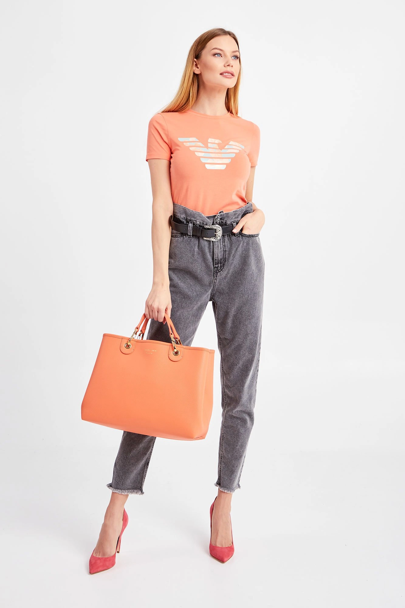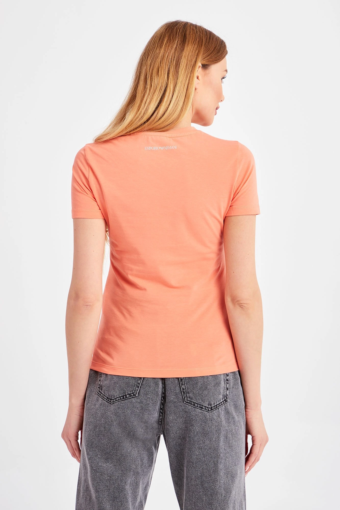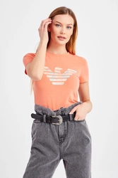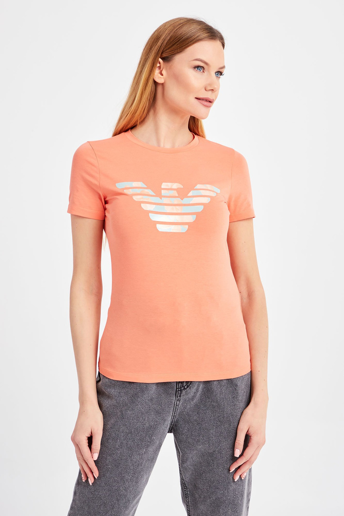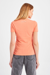 Morelowy t-shirt z okrągłym dekoltem. Z przodu wielokolorowy nadruk z logo marki. Z tyłu, na wysokości karku aplikacja z nazwą marki. T-shirt wykonany z najwyższej jakości materiału. Elegancki i niepowtarzalny.